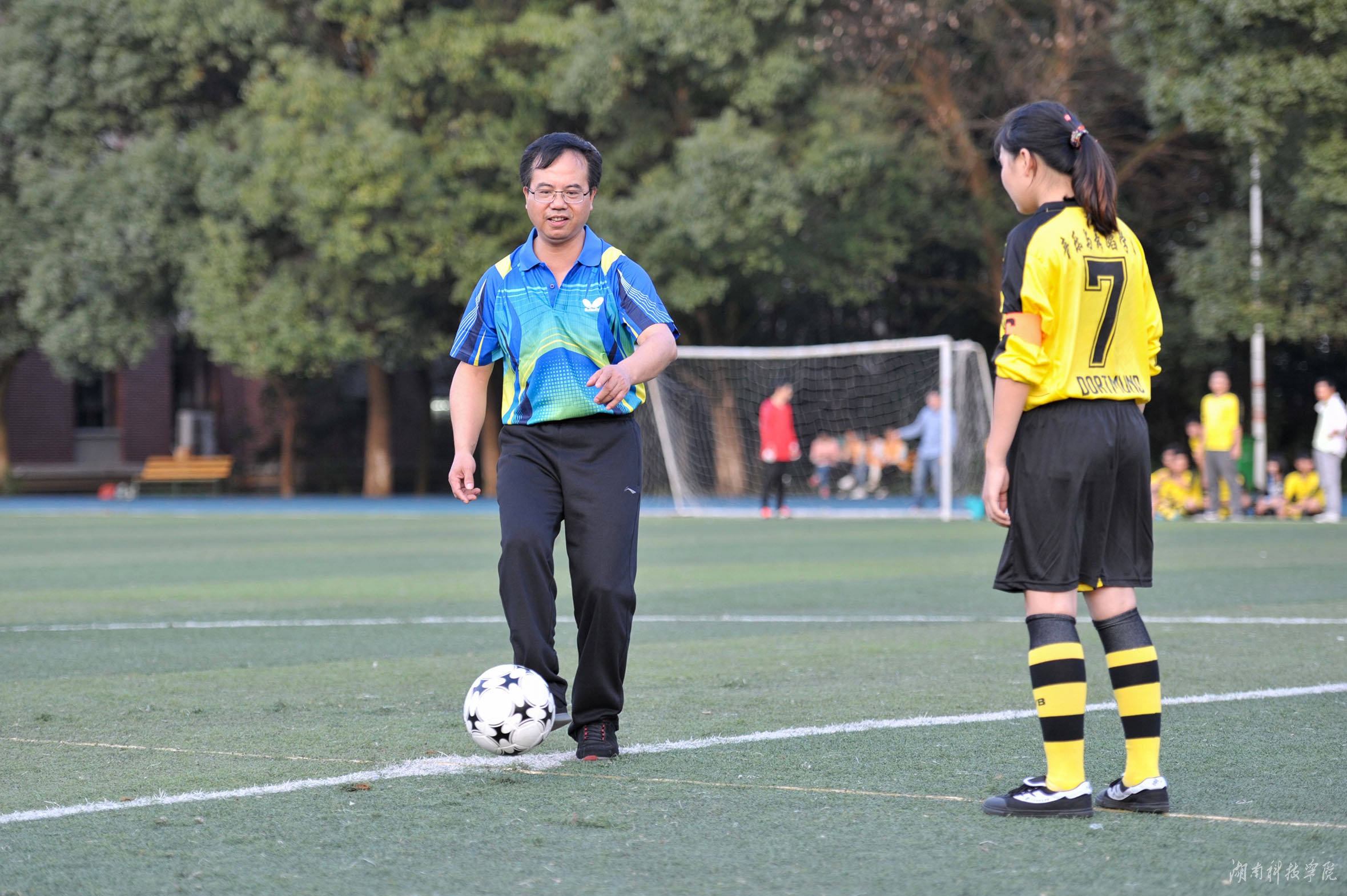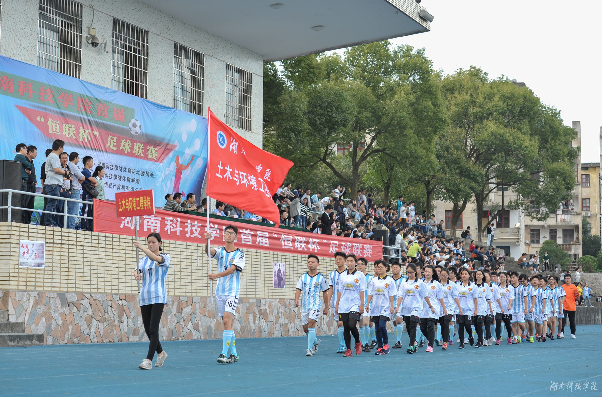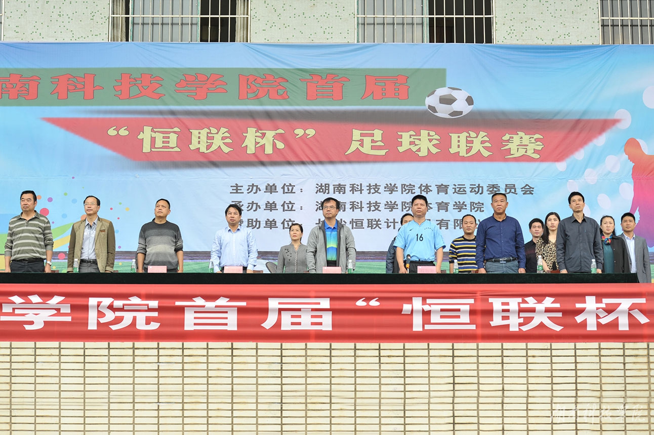 本网讯(记者 孙艳丽 实习记者 刘禹希)11月6日下午,在激昂的进行曲中,伟德官网首届“恒联杯”足球联赛开幕。校党委书记、校足球运动领导小组组长陈弘出席并致辞,副校长、校足球运动领导小组副组长李常健、程智开及长沙恒联计算机有限公司董事长邓自义等领导嘉宾出席,并兴致勃勃地为首场比赛开球。开幕式由程智开主持。