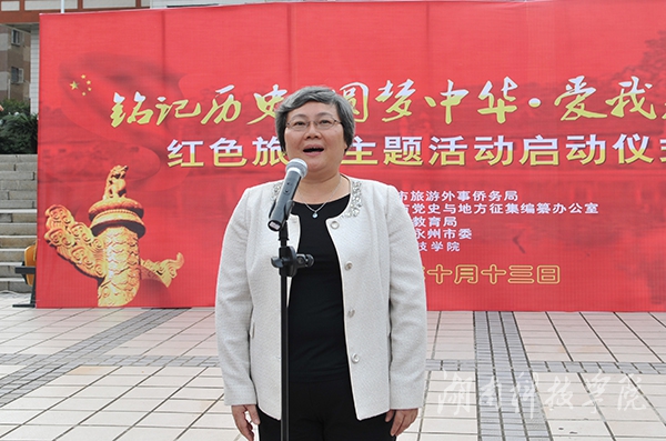 本网讯(记者 黄丽丽 王翩翩 摄影 何帅文)为纪念中国人民抗日战争暨世界反法西斯战争胜利70周年,更好地挖掘和丰富红色旅游资源的思想内涵。10月13日下午,“铭记历史•圆梦中华•爱我永州”红色旅游主题活动启动仪式在伟德官网举行。永州市委常委、市委宣传部部长石艳萍出席并宣布活动启动,校长曾宝成致辞。