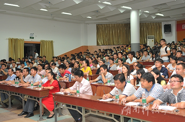 为什么要上大学?陈弘引用爱因斯坦名言“学校的目标始终应当是:青年人在离开学校时,是一个和谐的人,而不是一个专家,发展独立思考和独立判断的一般能力,应当始终放在首位”,他告诉在座的同学们,大学最根本的是要学会做人,做一个人格健全、拥有自信、懂得尊重他人,满怀社会责任感的人。他与同学们亲切讲述了优秀教师张京华教授和优秀校友欧阳晓平院士、秦光荣的事迹,希望全体师生能够以他们为榜样,学习其优秀的品格,刻苦钻研的精神。
