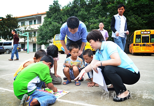 本网讯(通讯员 劳有娟 摄影 刘信)9月26日,副校长程智开、党委组织部部长卢桂珍、机关党委书记雷树彬带领党委组织部党支部全体成员,深入扶贫村——新田县冷水井乡潮水铺村,为56名潮水铺村青少年开展“快乐学习 健康成长”体验式团体培训活动,引领他们在体验式活动中学会快乐学习。