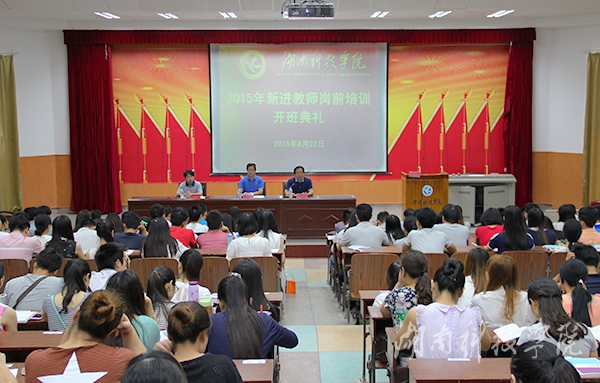 本网讯(实习记者 周芬 摄影 何帅文) “肩负时代重任,胸怀青春信念。群英荟萃在潇湘,校园永远是春天……”伴随着校歌《潇湘之歌》的嘹亮歌声,8月22日,伟德官网在明德楼一楼报告厅举行2015年新进教师岗前培训班开班典礼。校党委委员、副校长宋宏福主持典礼,校党委委员、副校长郑山明、李常健等领导出席。