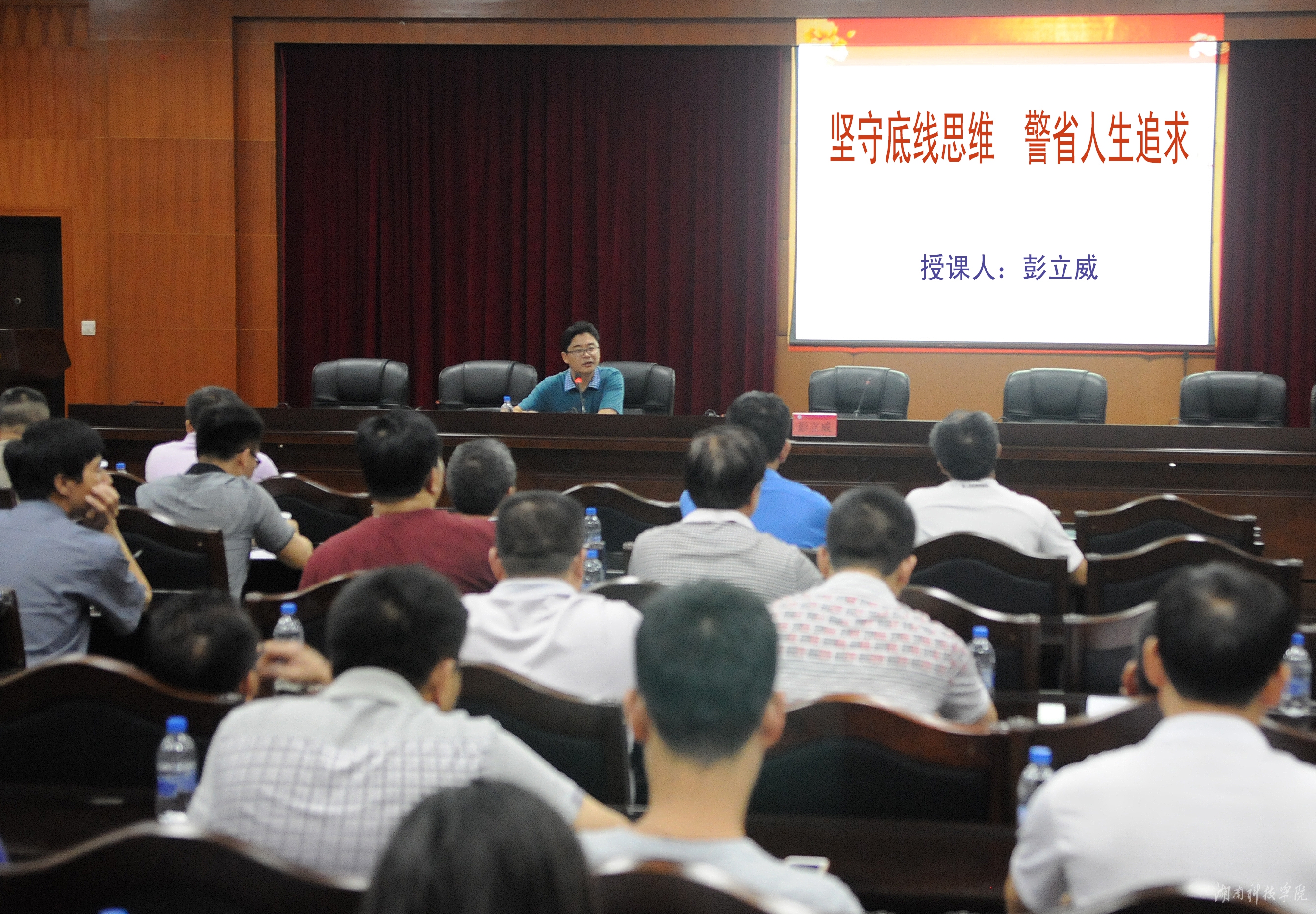 本网讯(记者 吴亚 摄影 秦峰)6月18日晚,伟德官网基层党组织干部培训班第二讲在行政办公楼八楼会议室举行。校纪委书记彭立威作题为《坚守底线思维,警省人生追求》专题党课。各机关党总支委员以及全体处级干部参加培训。