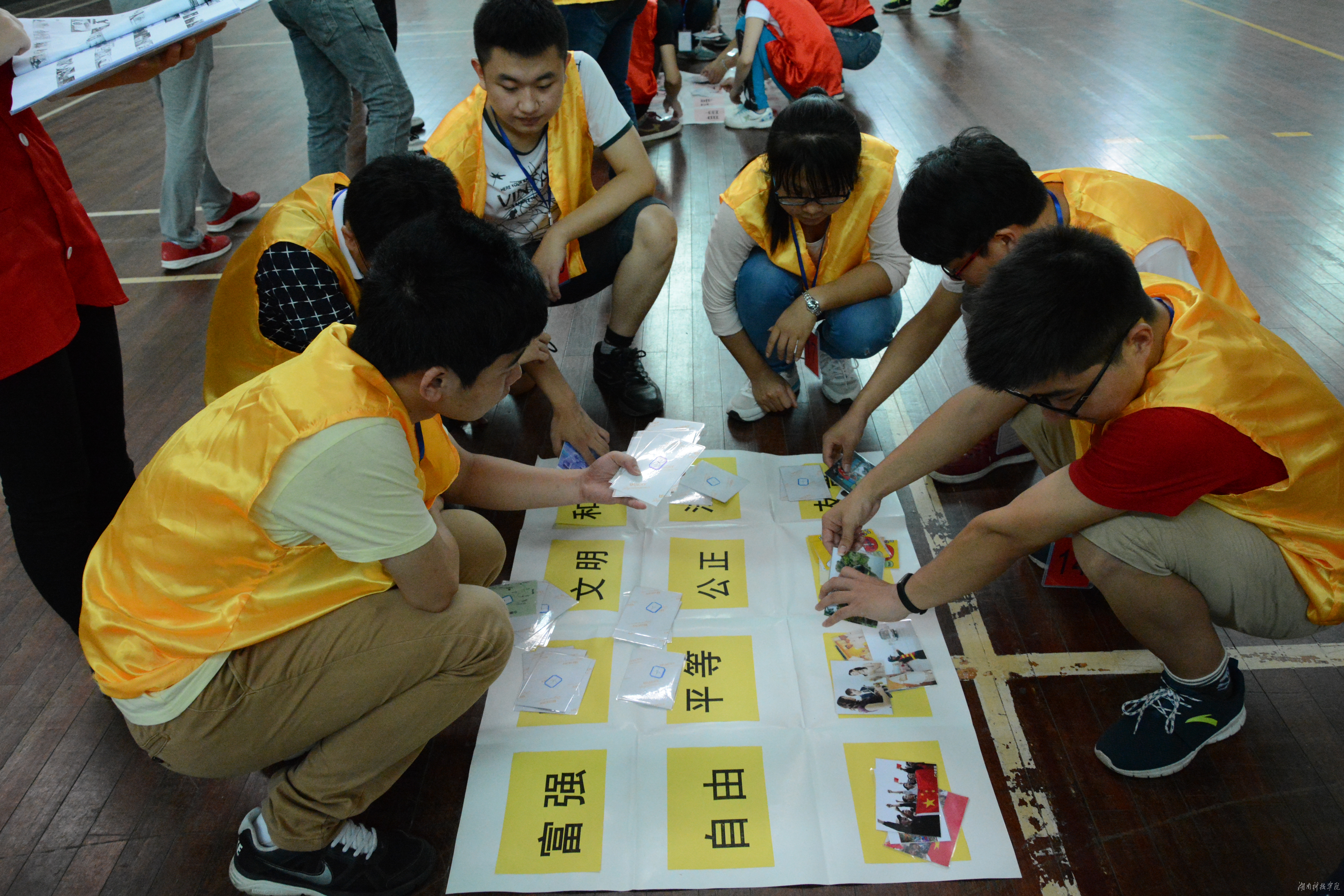 此次活动以“全员参与,全程参与;友谊第一,比赛第二”为口号,分为四个阶段,学生党员根据年级和性别随机组成红、黄、蓝、绿4队,用班组文化与团队精神体验丰富有趣的学习活动。