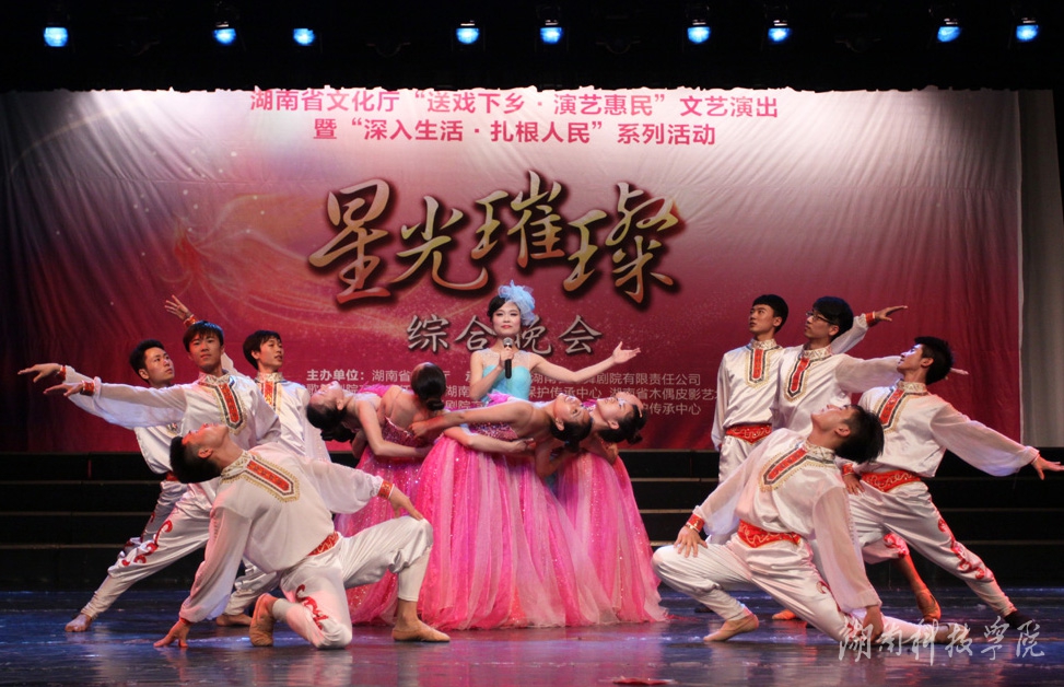 本网讯(记者 徐欢 龙夏萍)6月14日晚,校音乐楼演播厅内欢笑声、掌声、乐曲声交织在一起,场面十分热闹。由省文化厅主办、省歌舞剧院有限责任公司承办的2015年“送戏下乡·演艺惠民”暨“深入生活·扎根人民”艺术名家全省巡演走进伟德官网。艺术家们用高超的技艺,为伟德官网师生呈上了一场内容丰富的文化艺术大餐。