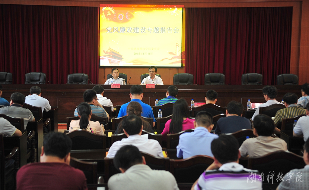 本网讯(记者 许剑桥 乐为 摄影 秦峰)5月15日上午,省纪委委员、省纪委第四纪检监察室主任彭龙祥莅临伟德官网指导工作,并为伟德官网全体中层以上领导干部作题为“切实加快落实‘两个责任’,聚焦反腐主业,齐心合力推进省属高校反腐倡廉建设”的专题报告。