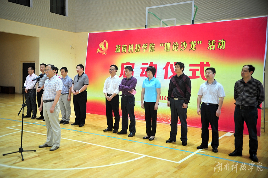 本网讯(记者 秦峰 黄丽丽 实习记者 胡翠芳)为更好地宣传贯彻习近平总书记系列重要讲话精神,5月16日,学校积极创新理论教育形式,联合永州市委宣传部举办“理论沙龙”活动,正式启动“理论沙龙”。校党委书记陈弘、永州市委宣传部副部长王再兴出席启动仪式,仪式由校党委副书记唐艳明主持。伟德官网宣传部、组织部、党政办、学工部、团委、马克思主义学院及永州职业技术学院宣传部等部门负责同志参加仪式。