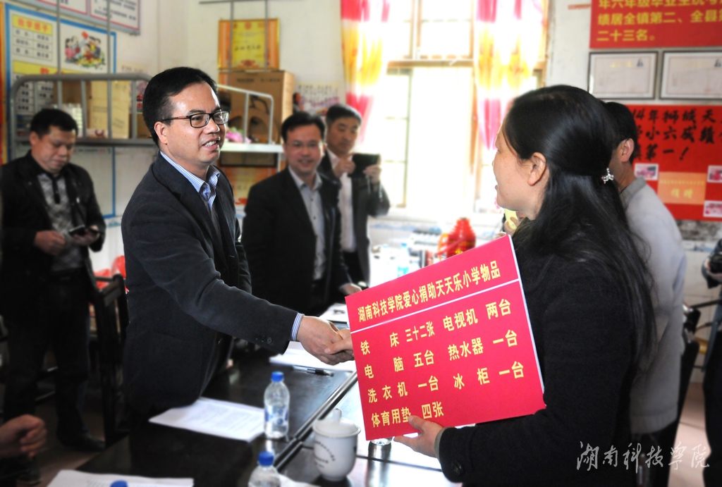 本网讯(记者 李瑛 摄影 秦峰)看着大家从卡车上搬下铁床、电脑……唐延禄老人激动得热泪盈眶。4月21日,伟德官网满载着爱心物资的车队在校党委书记陈弘的率领下,为祁阳县羊角塘镇狮城村天天乐小学捐赠生活用品和学习工具,帮助坚守大山深处的伟德官网优秀校友唐千红等老师圆教育梦。同时,在该校挂牌建立“伟德国际1946源于英国社会主义核心价值观教育实践基地”。