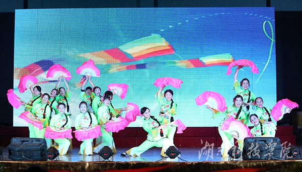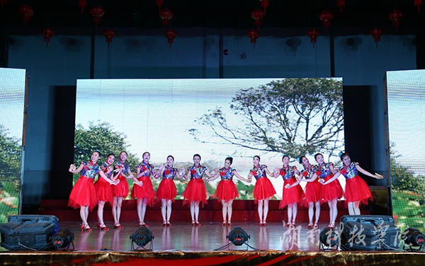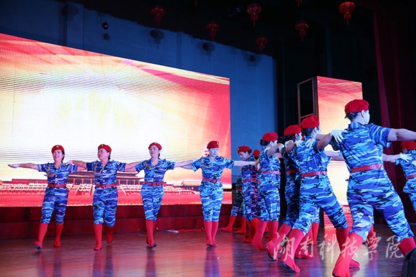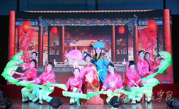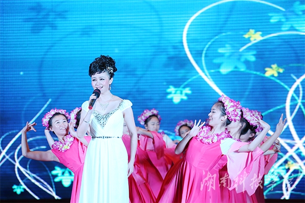 健身舞协会带来的歌伴舞《又唱浏阳河》表达了对建设新生活的美好愿望,翠绿的衣裳、粉红的扇,加之缓缓的浏阳河水背景图,让人沉醉在美好生活向往之中。诗朗诵《敬爱的老师》以朴实的语言、真挚的口吻,为现场的教职工们带来一次又一次的感动。花鼓戏《刘海砍樵》令人耳目一新,诠释了中华传统文化的魅力。音乐系教师龙湘涵,在歌伴舞《板蓝花儿开》的表演中,她清脆柔美的歌喉犹如天籁之音,将南方女子纤细温婉的韵味展现得淋漓尽致,观众连连称赞。随着动感的音乐声响起,辅导员们惊艳亮相,动感的爵士舞《麻辣教师》,引爆了全场氛围。罗映红老师带领图书馆老师编排的《走向复兴》慷慨激昂地再现了科院精神,铿锵有力、气势恢宏。节目最后,教工团总支推出的快板《欢声笑语赞科院》完美地表现了科院一家人的主题,快板结合了地方特色,语言活泼俏皮,对校园环境、学习氛围进行了高度评价,给人以满满的正能量。