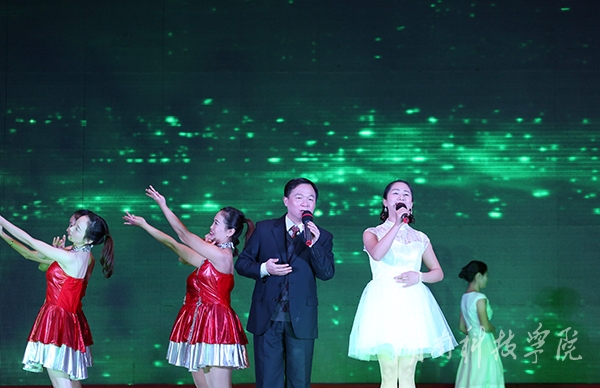 本网讯(记者 李瑞 实习记者 阳新秀 龙夏萍 摄影 何帅文)12月30日晚,体育馆内华灯璀璨,欢声笑语弥漫。2015年教职工新年联欢晚会在此举行,全校师生在这辞旧迎新的日子里用歌声与舞姿来表达自己心中的无限喜悦。陈弘、曾宝成、唐艳明、宋宏福、彭立威、郑山明、李常健、吴小林、陈仲庚等校领导与全体教职工一道,喜迎2015年的到来。