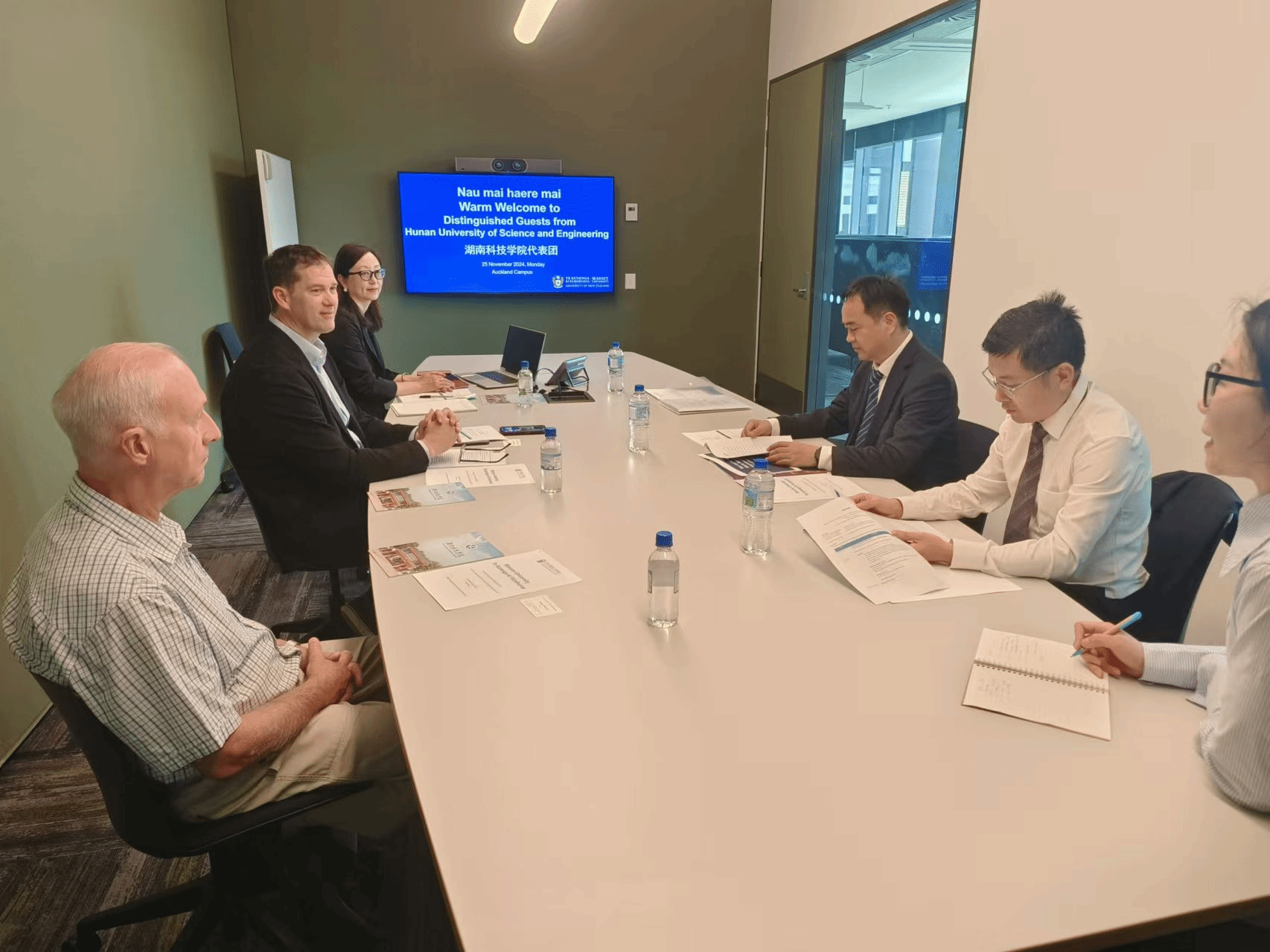 在访问新西兰奥克兰期间,学校代表团访问了梅西大学,与梅西大学执行董事Chris Carey、数学与计算科学学院院长Chris Scogings,以及全球交流办公室主任Ms. Ann Wu-Ross进行会谈。会谈中,双方深入探讨了设立本科及硕士层次衔接课程项目的具体实施细节,并期待围绕高质量、高水平国际化人才培养目标,继续在更广泛领域开展深度合作。