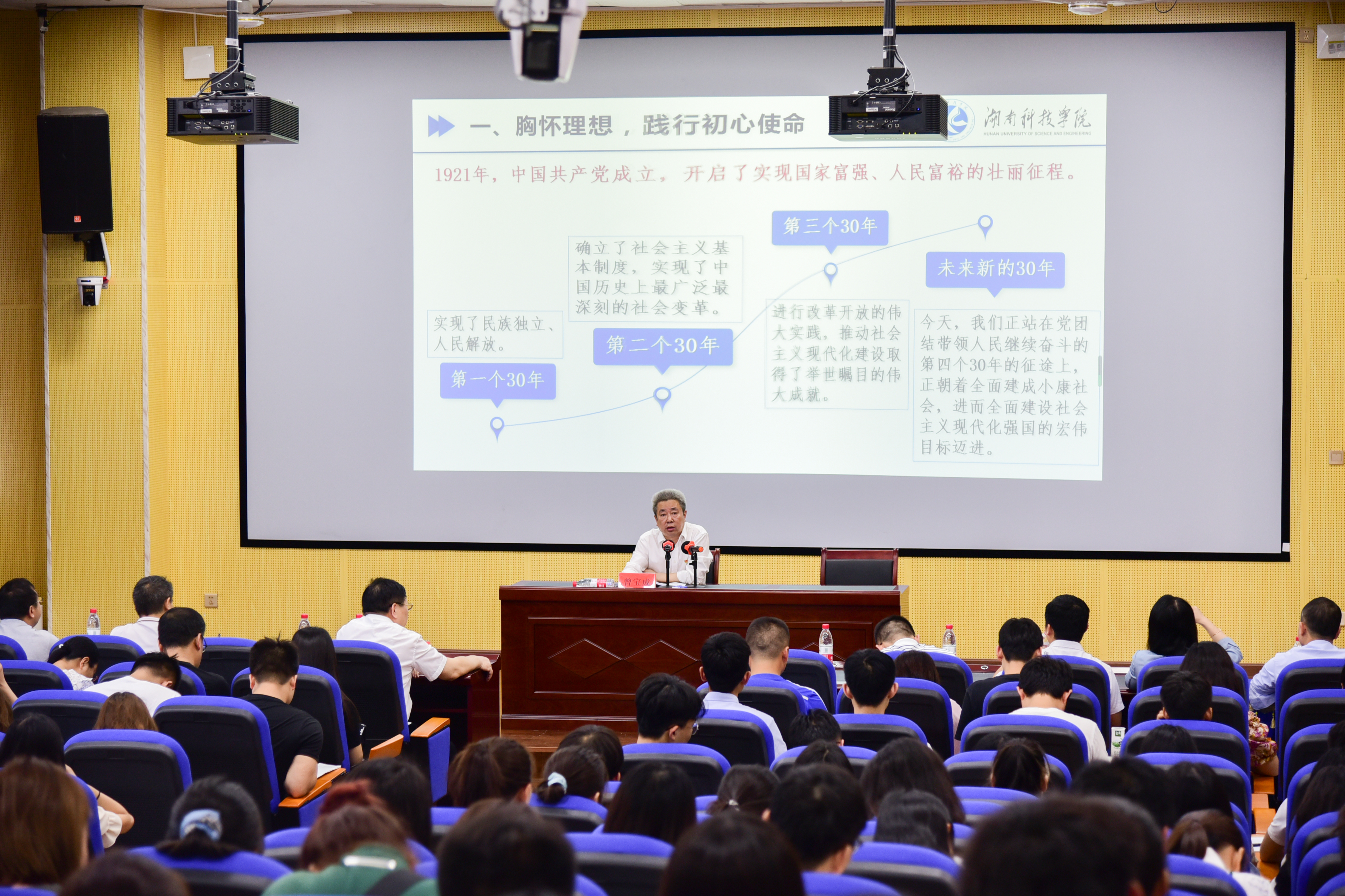党课由学工部部长唐华山主持,各教学学院党总支副书记、毕业班辅导员、在校毕业生党员参会聆听党课。