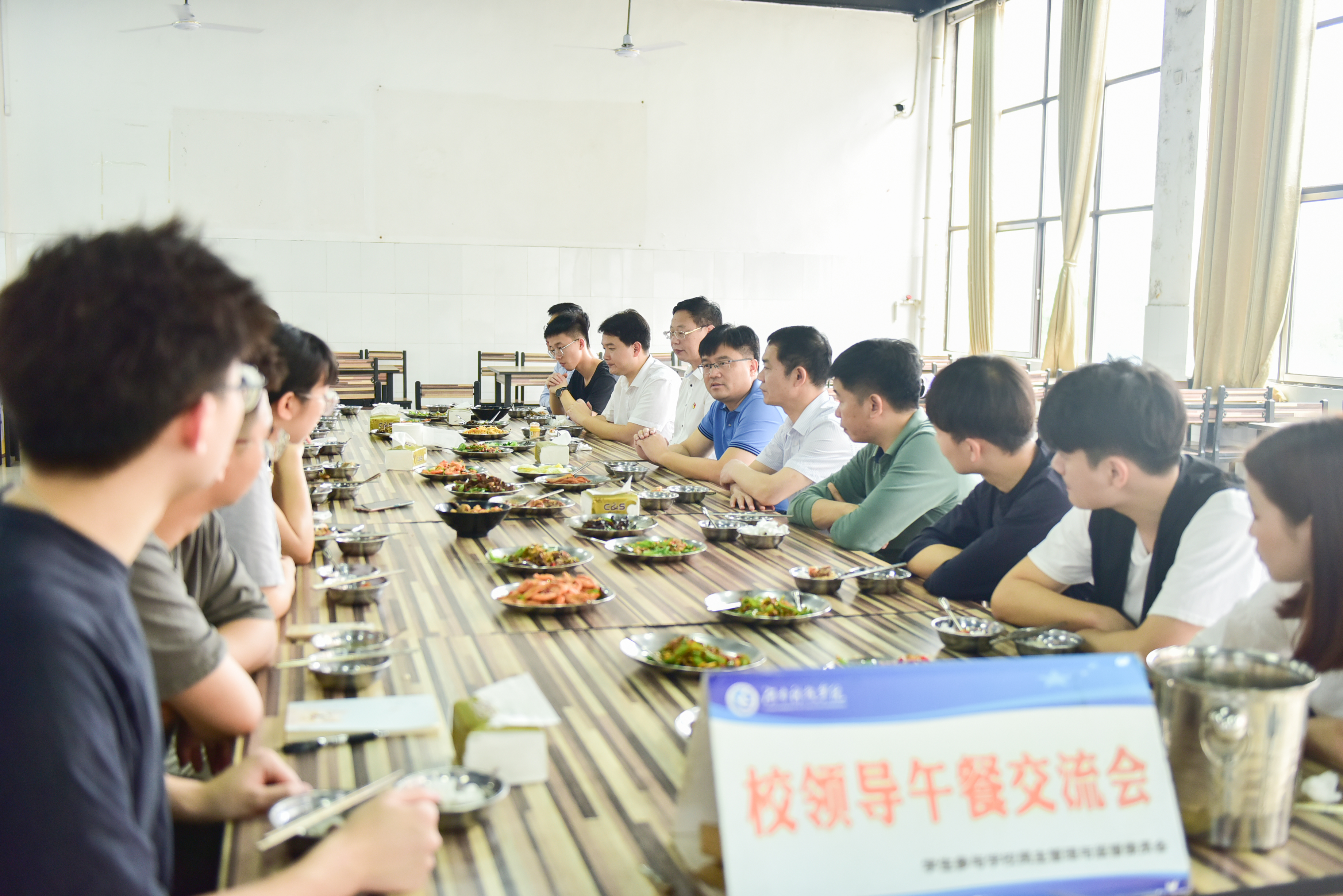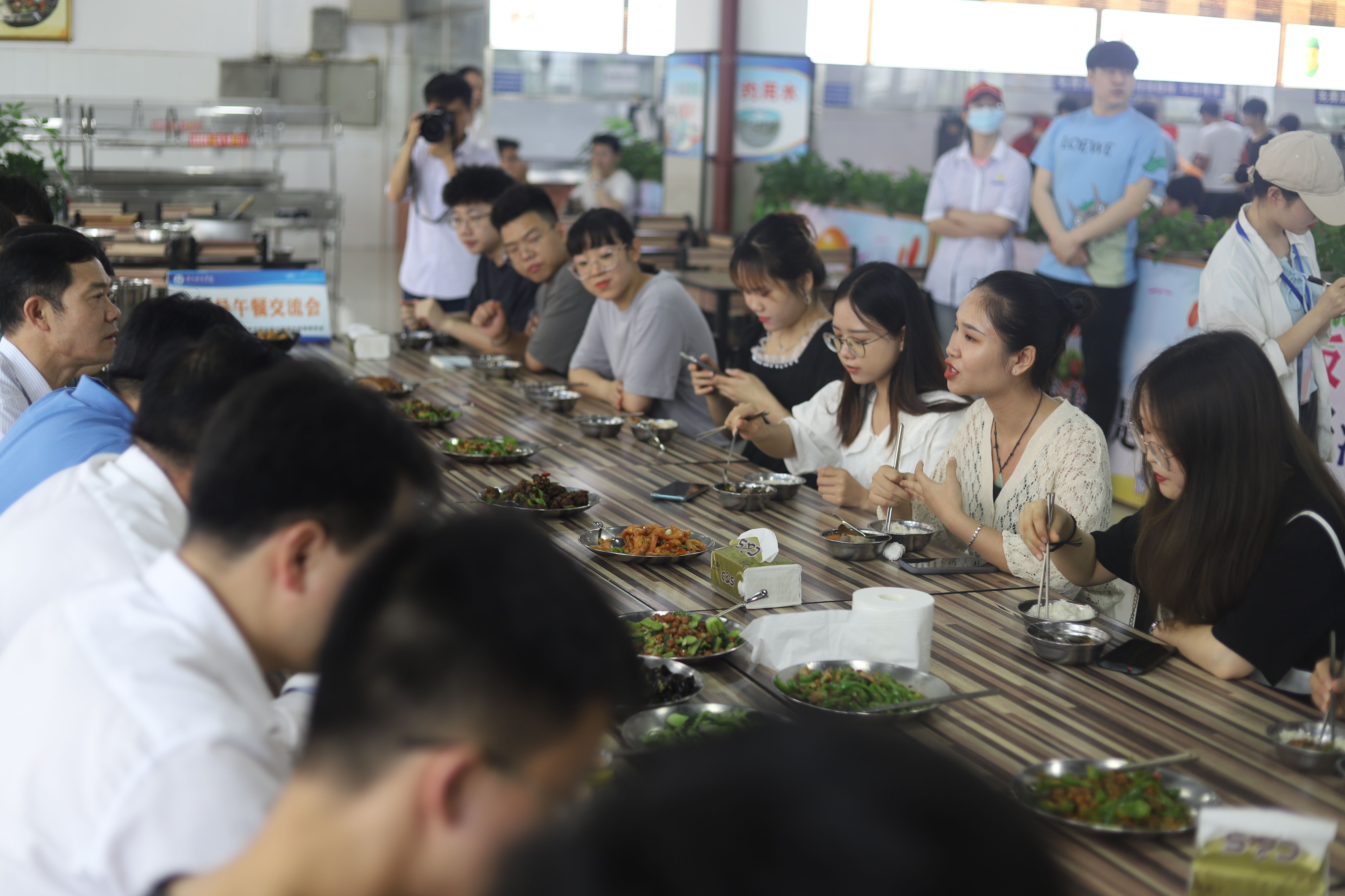 本网讯(记者 胡鑫 张成源)“毕业之际能和校领导交流座谈令我收益匪浅,感谢学校给了我青春成长的四年。”6月1日,校长李钢、副校长吴小林与14名毕业生代表在松园食堂共进午餐,开展“零距离”接触与交流,倾听同学们的心声,与大家聊家常、说成长、话未来。