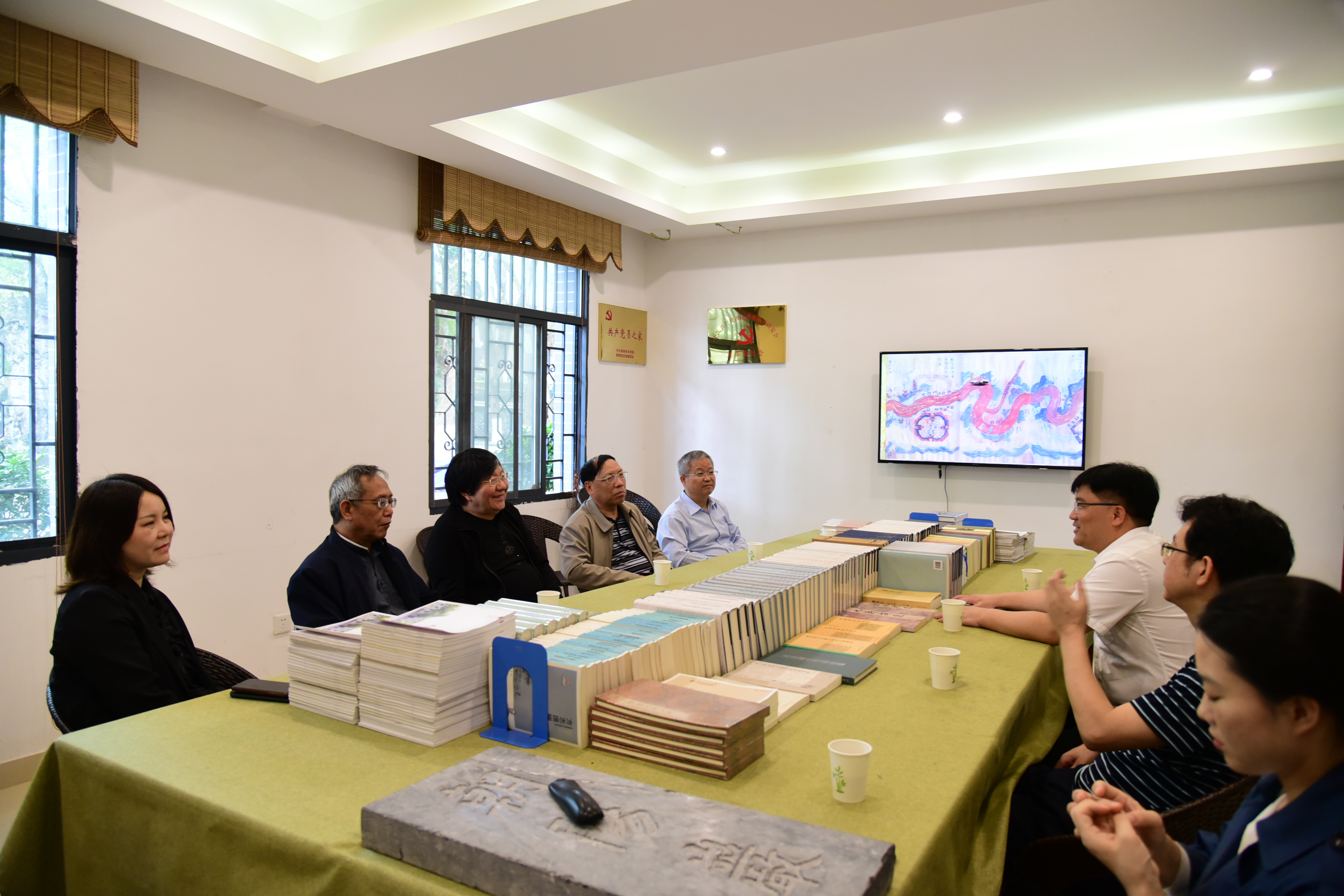 骆玉明一行参观了国学院地方文献图书室、潇湘国学汉服设计与缝制体验馆、小成堂等地,对九疑古琴、碑刻传拓等文化进行深入交流。骆玉明一行对国学院的办学特色给予了高度赞扬和肯定,纷纷表示这是学校应有的国学教育担当,希望国学院越办越好。
