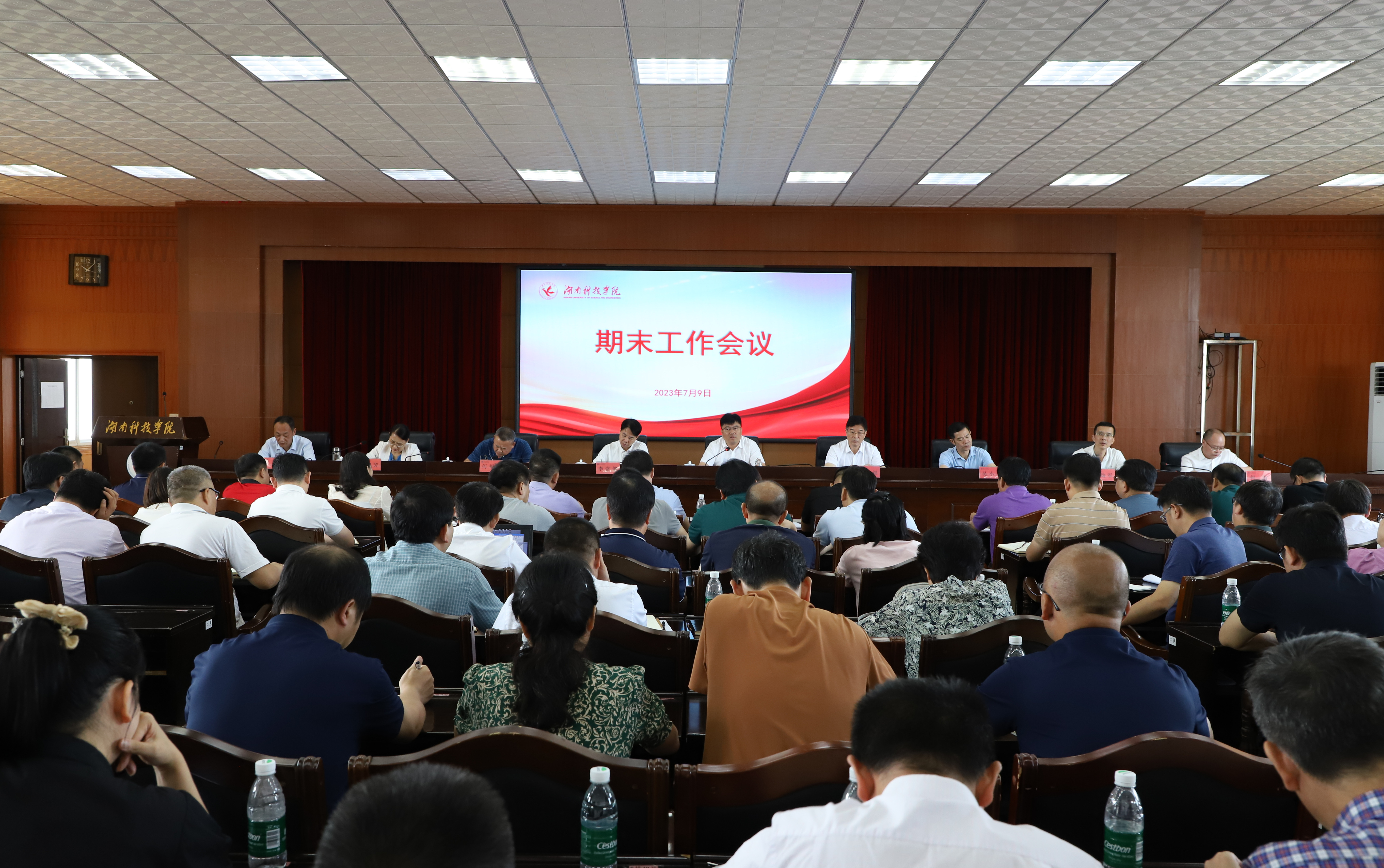 本网讯 7月9日,学校召开2023年上学期期末中层干部大会,党委副书记、校长李钢,党委副书记宋宏福,校领导李常健、吴小林、何福林、陈灿军、郑银芳、何海,党委委员、组织部长杨涛以及全体中层干部参加会议。