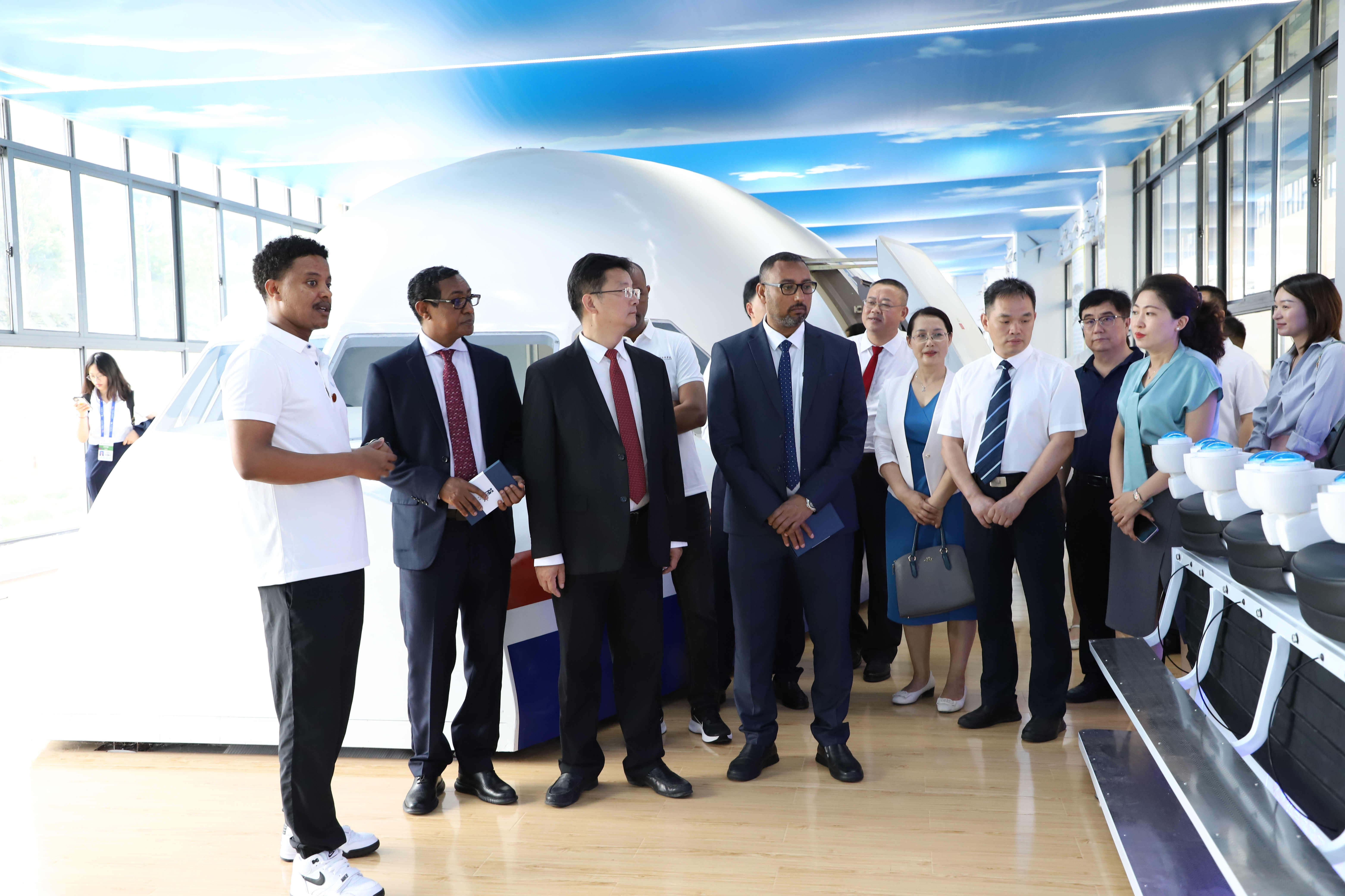 埃塞俄比亚驻华大使塔费拉一行先后考察了创新创业学院、旅游与文化产业学院、智能制造学院及化学与生物工程学院。还看望了在校工作的两名埃塞俄比亚籍外国专家及家属,并鼓励他们为中非文化交流做出更多的贡献。在参观国学课堂时,欧阳平彪老师弹奏古琴曲《高山流水》,欢迎远道而来的异国知音。欧小松老师当场用永州特有的女书书法写下“多元文化,交流互鉴”赠给非洲客人,表达永州人民的美好祝愿。