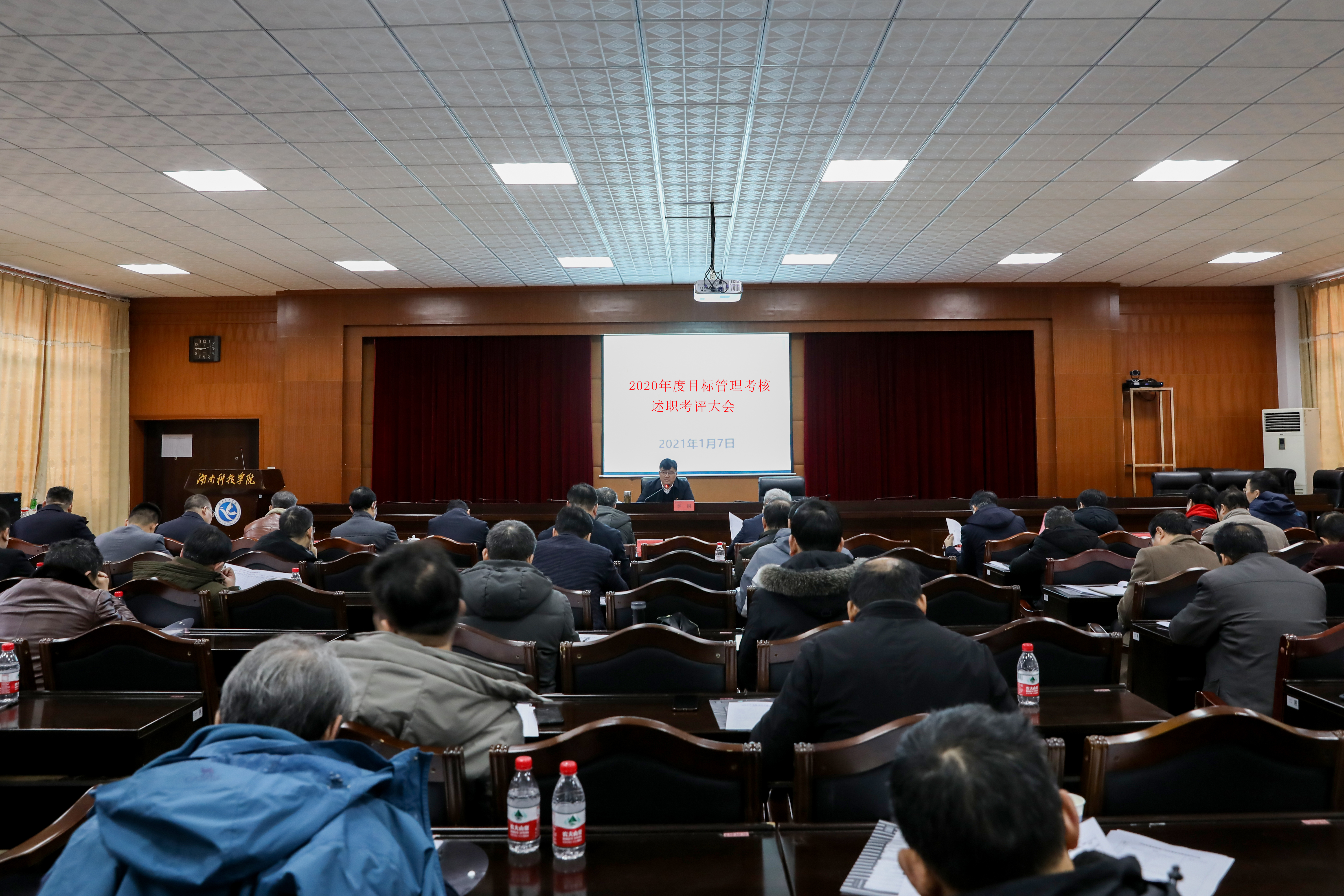 本网讯 1月7日,学校召开2020年目标管理考核述职考评大会。全体校领导及中层正职(含主持工作)参加会议并担任评委。会议由校长李钢主持。