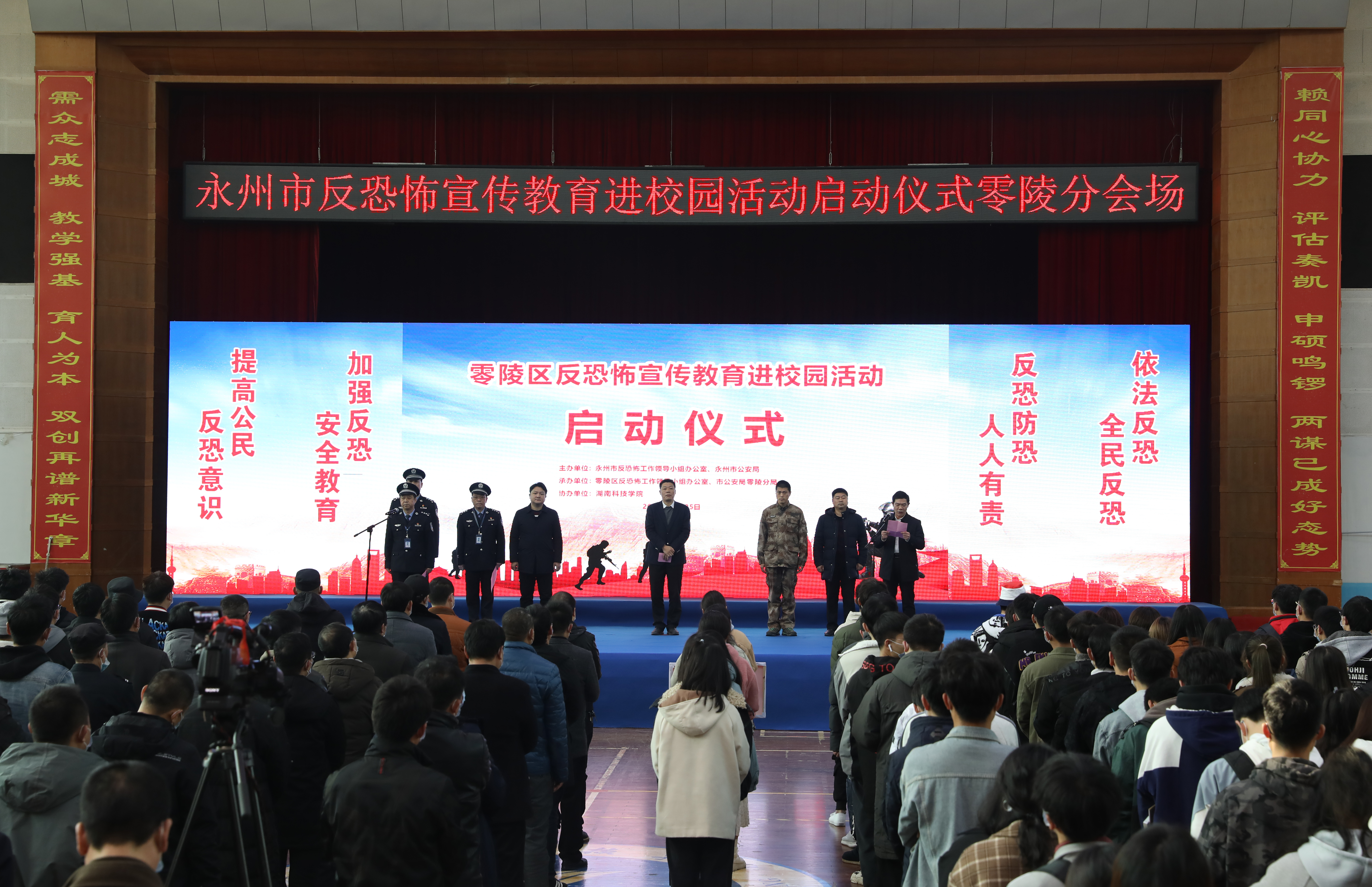本网讯 12月25日下午,零陵区“反恐怖宣传教育进校园”活动在伟德官网启动。校党委委员、副校长吴小林,零陵区委常委、政法委书记唐会国,零陵区人民政府副区长、公安分局局长王小会出席活动,启动仪式由王小会主持。