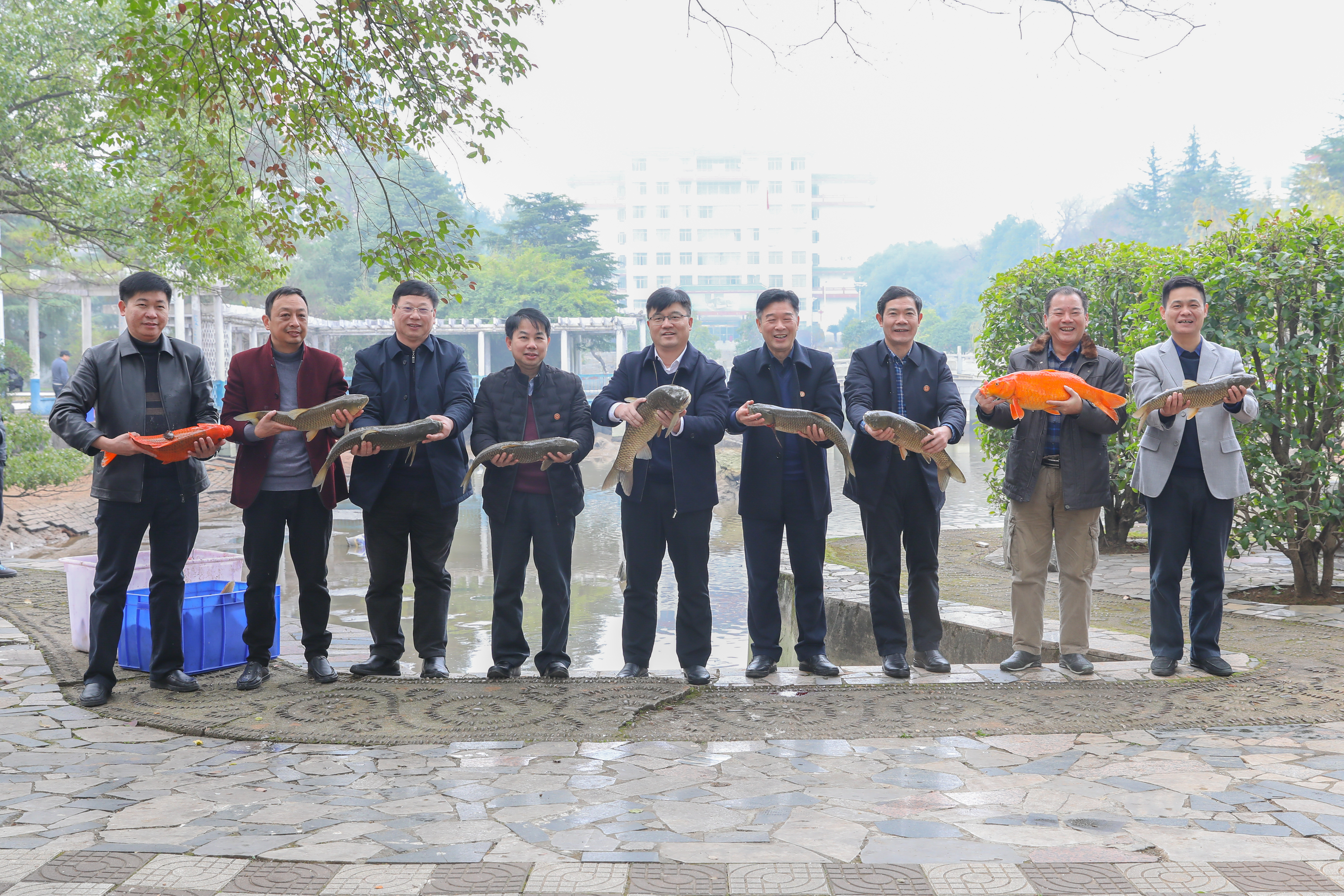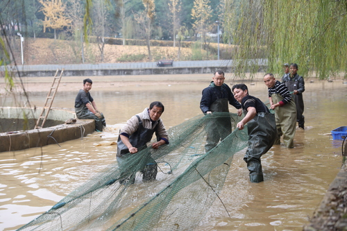 从前年开始,学校请师生在年终免费品尝鱼肉大餐,今年也不例外。12月27日—28日,后勤服务总公司的师傅们循着大鱼的身影下网抄鱼,共捕捞出草鱼、鲢鱼、鲤鱼等千余斤鲜鱼,最大单条重达12斤。校长李钢,副校长宋宏福、李常健、吴小林等来到现场,一起怀抱“锦鲤”合影送祝福。