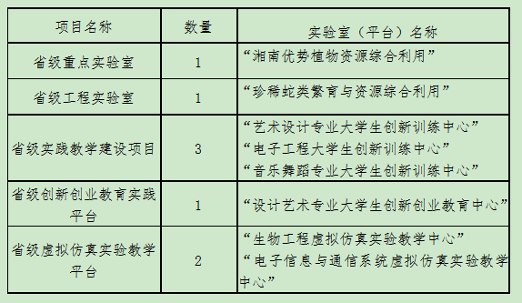 建立校企共合作建实验室,共建实验室7个,面积675平方米,投入仪器设备价值约385万元。2019年上期,校企共建实验室受益学生人数为500人,并初见成效,其中“‘人工智能与光学自动化技术’荣旭创新实验室”研发的作品“综合性小型化机器视觉关键技术”代表学校参加2019年第十三届“挑战杯”湖南省大学生课外学术科技作品竞赛获得二等奖,该实验室推出的项目“综合性小型化机器视觉关键技术实验及研发平台”和“交互式智能出勤管理系统的设计”申报大学生创新训练项目获得省级立项,并由省推向国家申报。由该实验室承担的“逆变器远程控制系统”校企合作项目2019年8月完成,并交付给深圳宏贝高科电子有限公司测试运行,目前运行状况良好。