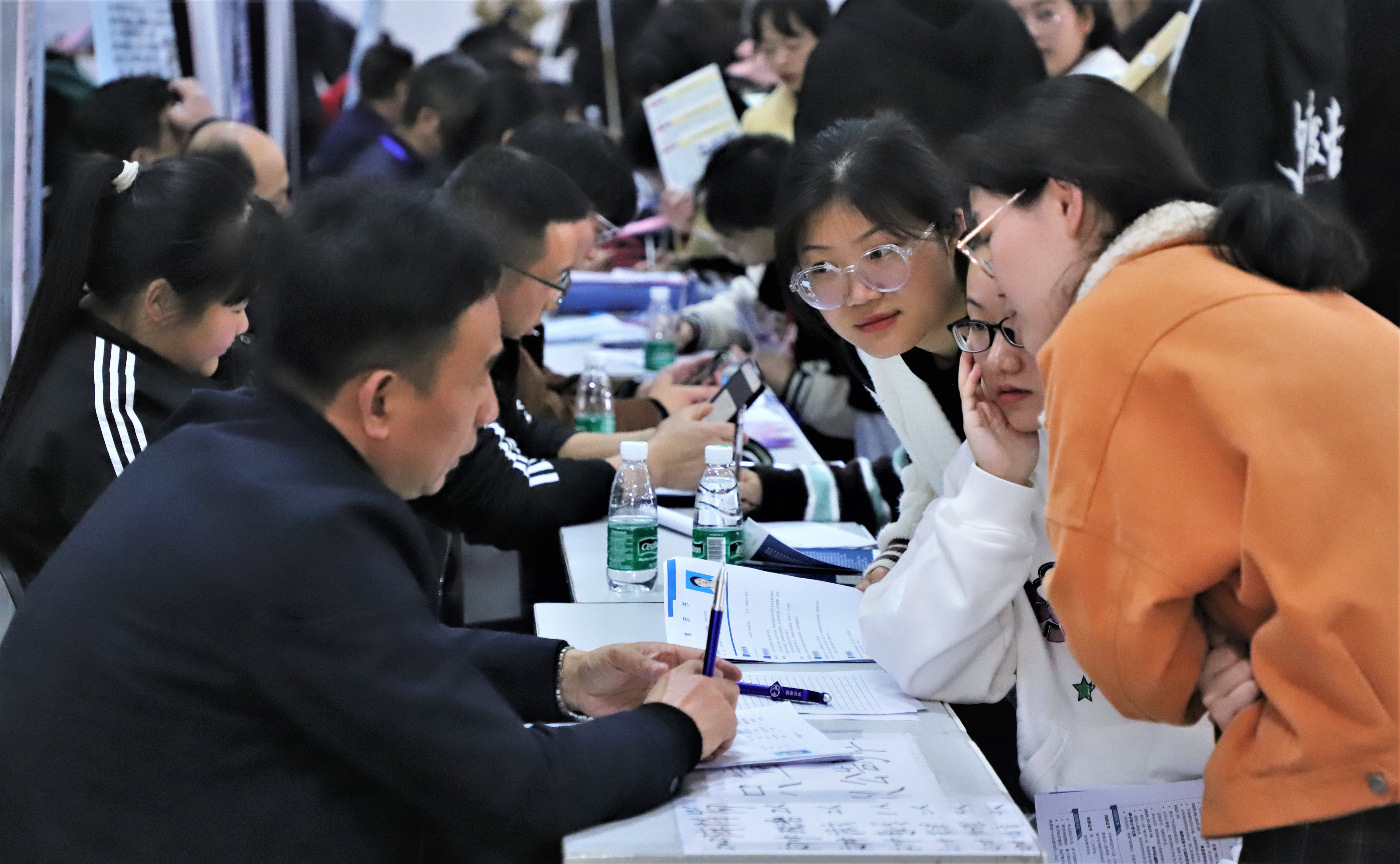 英语师范1903班的周凤说:“临近毕业让我感到压力很大,就业竞争激烈,学校主办的这次招聘会可以帮助我尽快找到工作,积累更多的经验”。