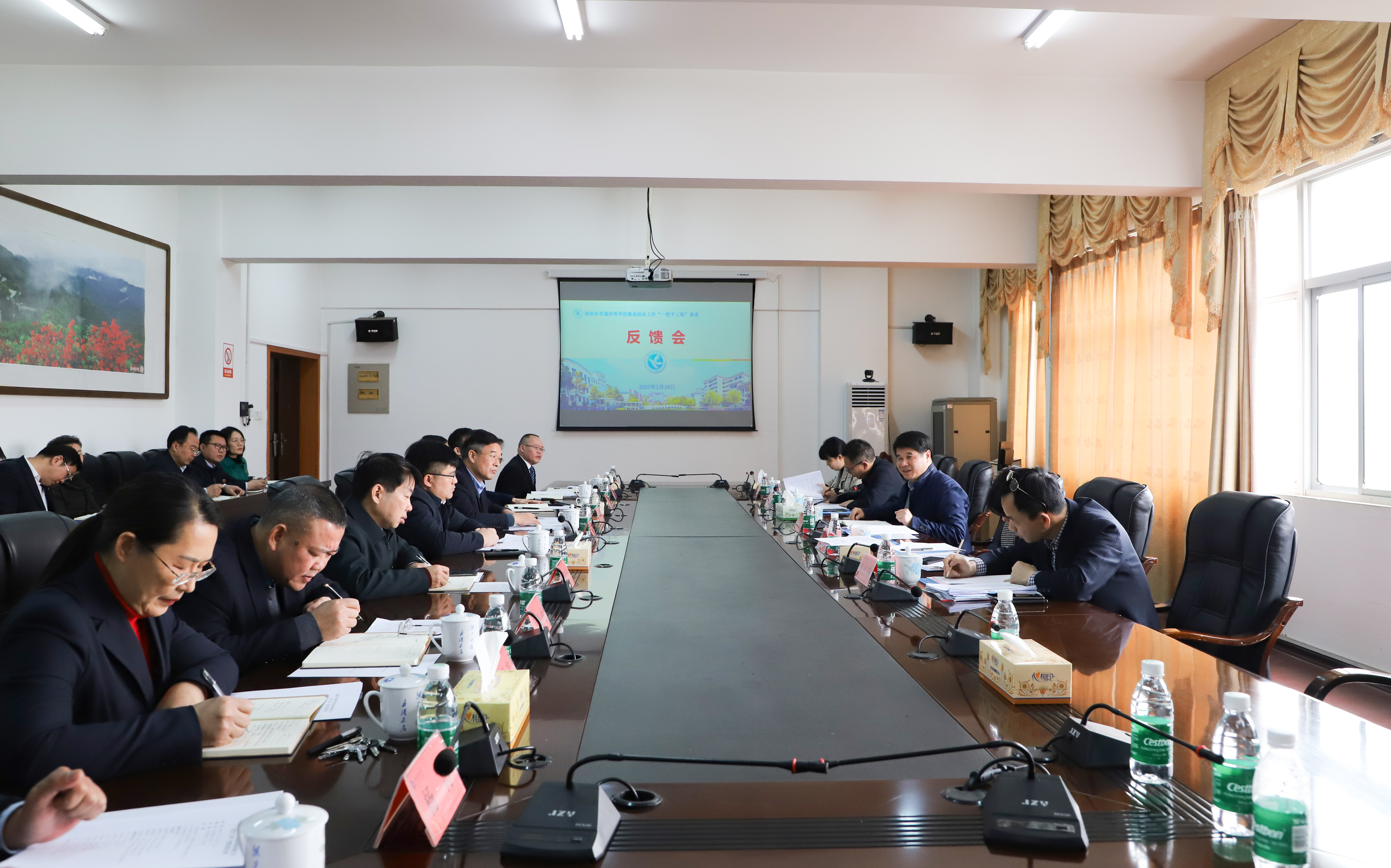 本网讯(记者 姚茹 陈心妍 李雨莲 张希玥)2月28日上午,湖南省高校毕业生就业创业工作“一把手工程”督查专家组来校,对伟德官网就业创业工作进行现场督查。专家组组长由湖南第一师范学院副校长周发明担任。党委副书记、校长李钢,党委副书记宋宏福及全体在家校领导、党委委员出席汇报会和反馈会。宋宏福主持会议。