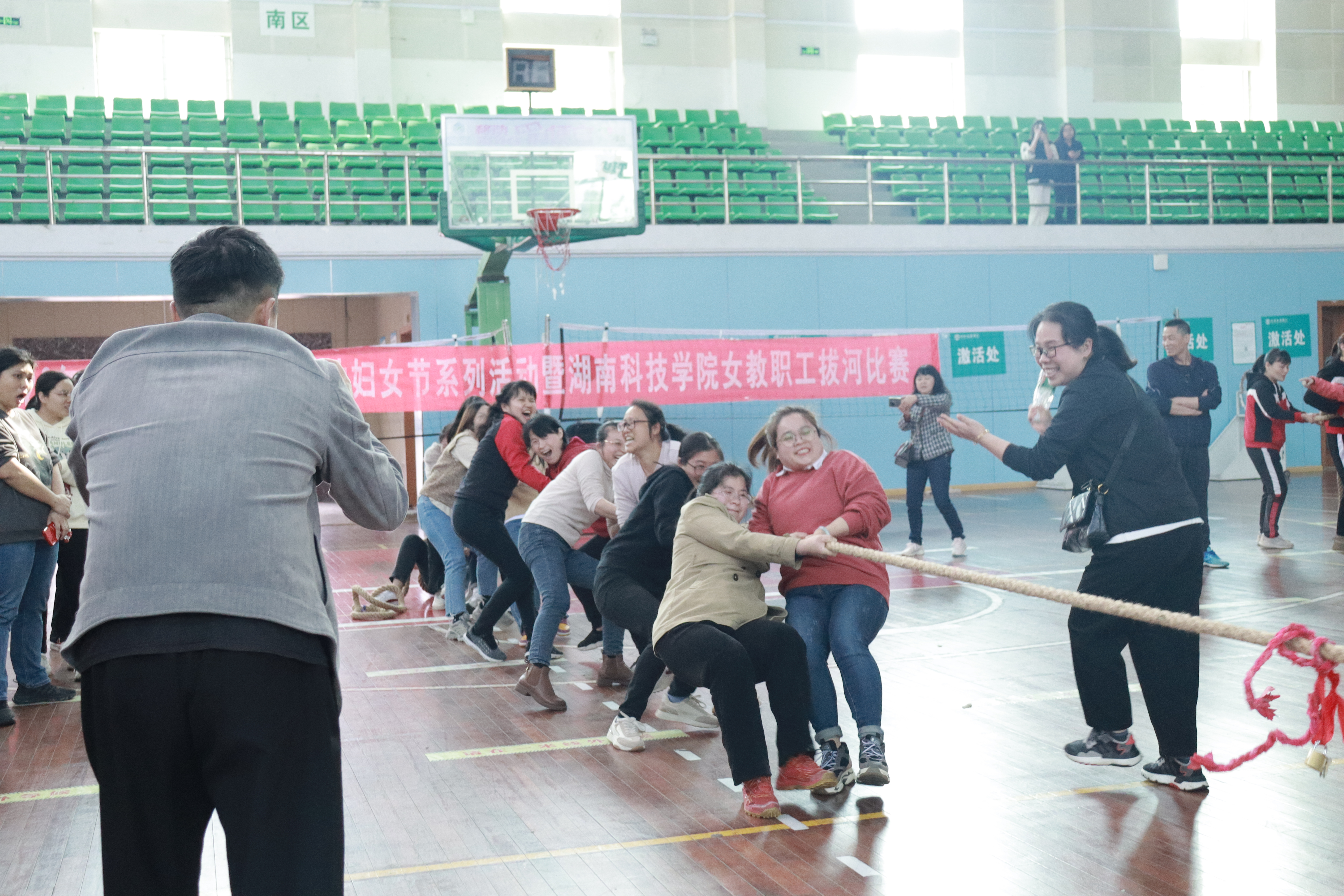 网讯(记者 程倩)伴随着三月的春风,第113个国际妇女节如约而至,丰富女教职工文化生活,进一步增强学校女教职工团队的凝聚力,3月8日,伟德官网举办纪念“三八”国际妇女节女教职工拔河比赛。校长李钢,副校长吴小林、何福林,纪委书记陈灿军到场观看比赛。