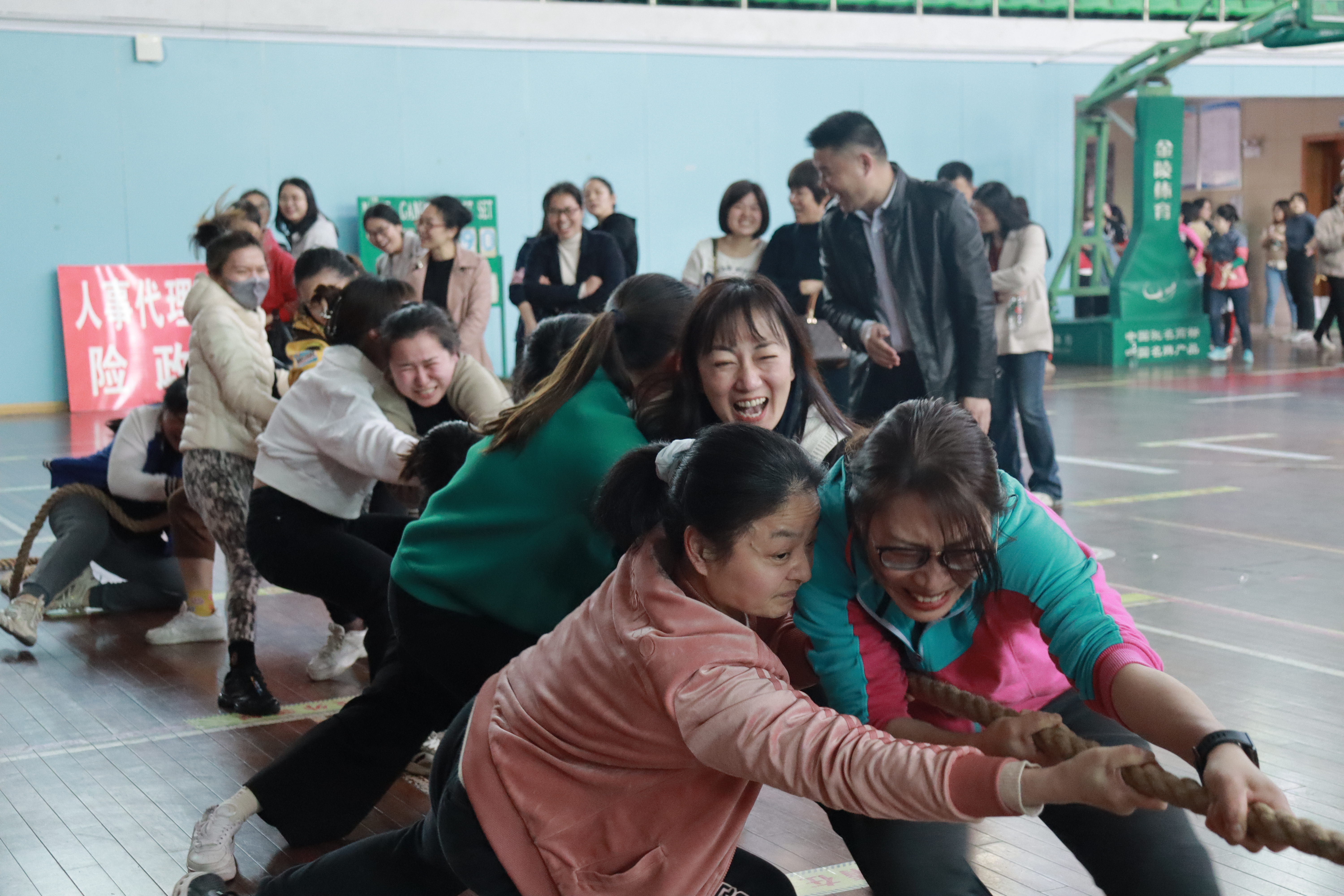 一条麻绳演绎出了拼搏的精神,更拉近了心与心的距离,这次拔河比赛,不仅锻炼了身体,提高了教师的团队意识,更增添了凝聚力,为和谐美好的文明校园增添了一抹亮色。