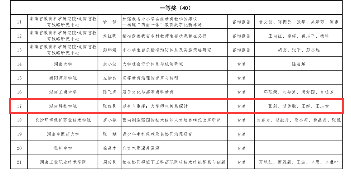 据悉,湖南省教育科学研究优秀成果奖由省教育厅组织评审,成果类别分为专著(论文)、编著、咨询报告三类。