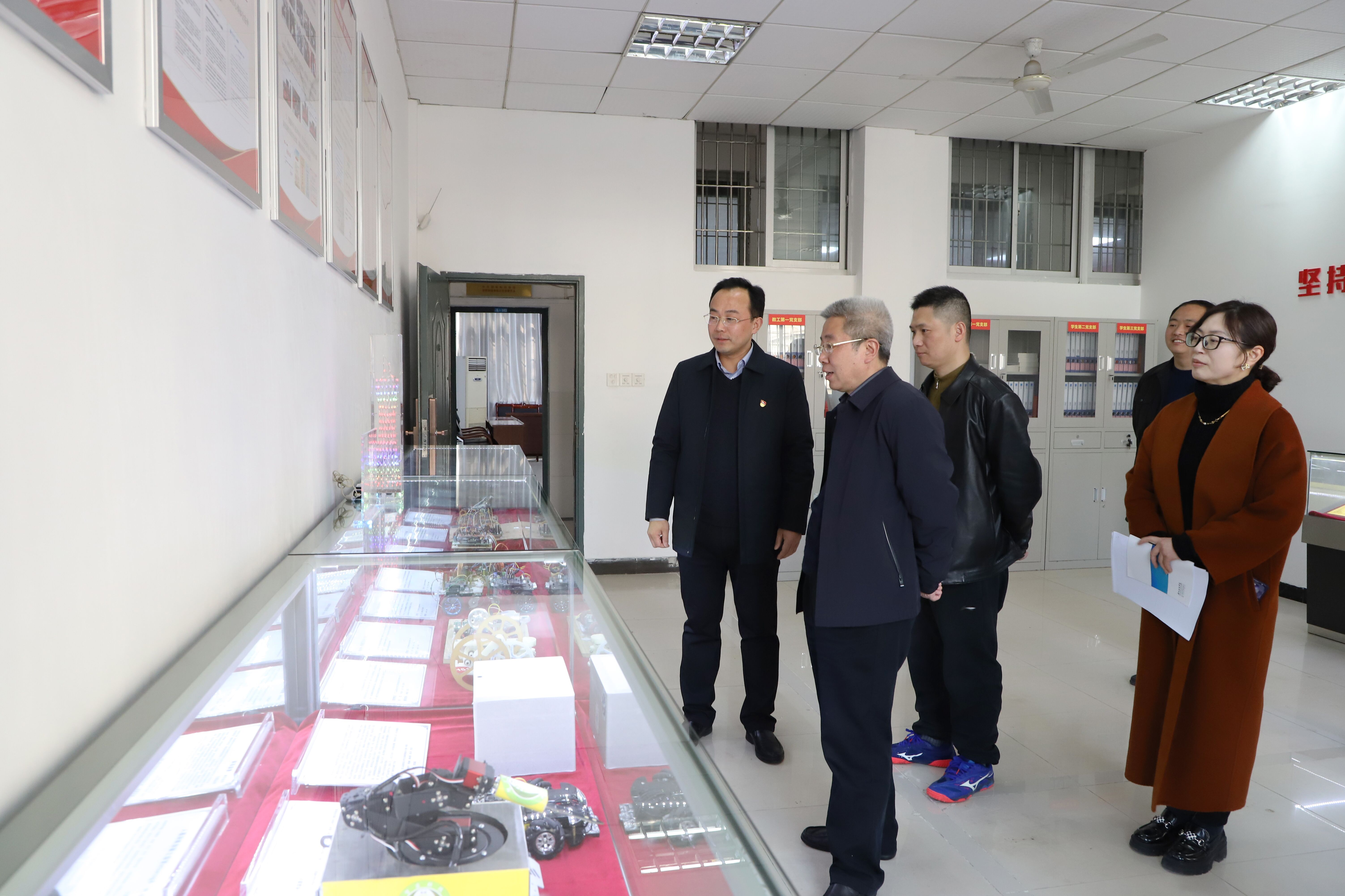曾宝成参观了学院党建陈列室并听取了学院党总支书记杨攀对基层党建工作的汇报。