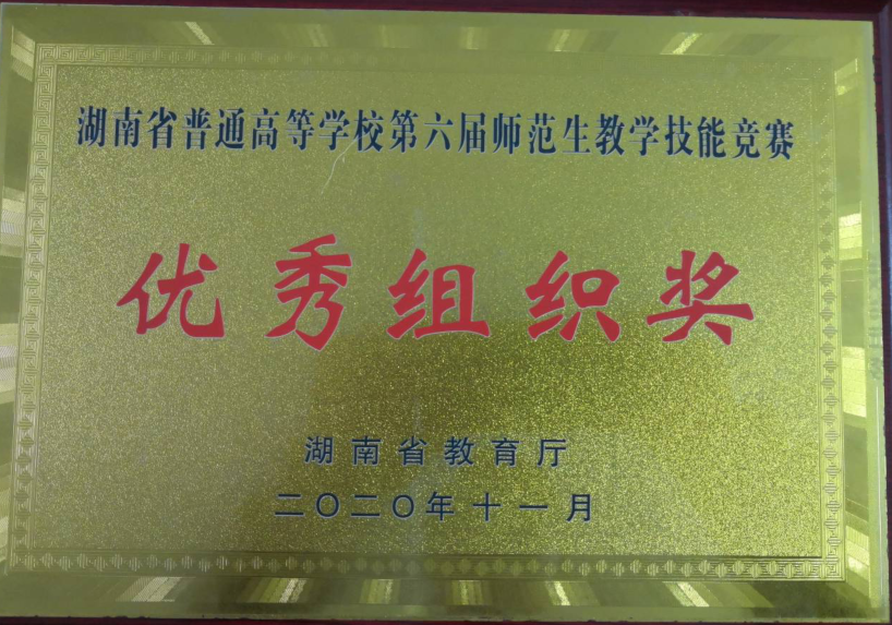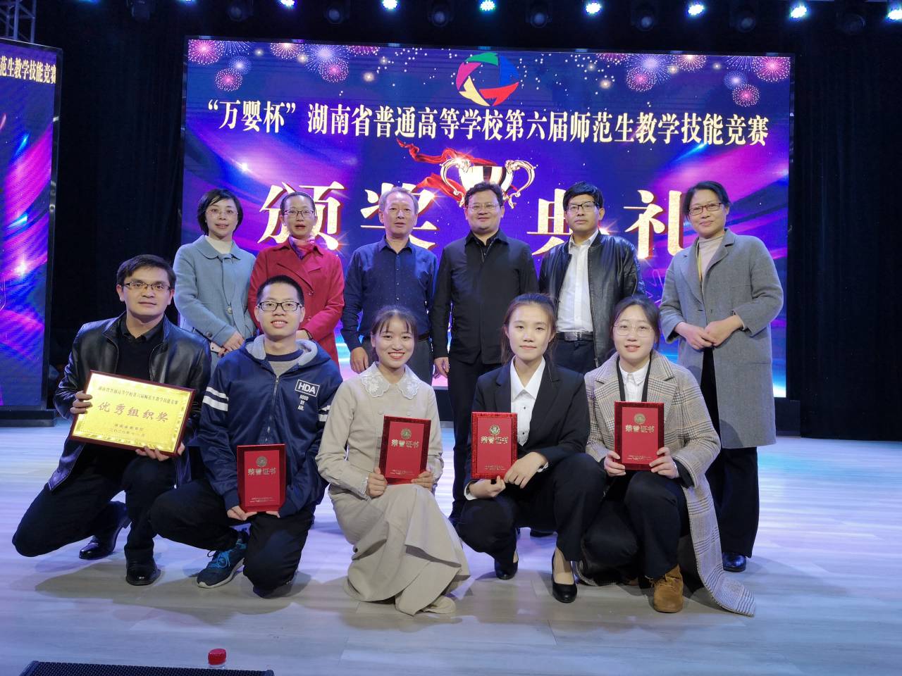 本网讯 11月21日,湖南省高校第六届师范生教学技能竞赛落下帷幕。伟德官网选派的5名选手全部获奖。其中,理学院数学1702班杨学凤同学荣获中学理科组一等奖,物理1802班谢涛玲同学荣获中学理科组二等奖;化学与生物工程学院化学1702班郑婷同学荣获中学理科组三等奖;外国语学院英语1802班郑伊然同学、刘建辉同学分别荣获中学文科组三等奖。学校荣获优秀组织奖。