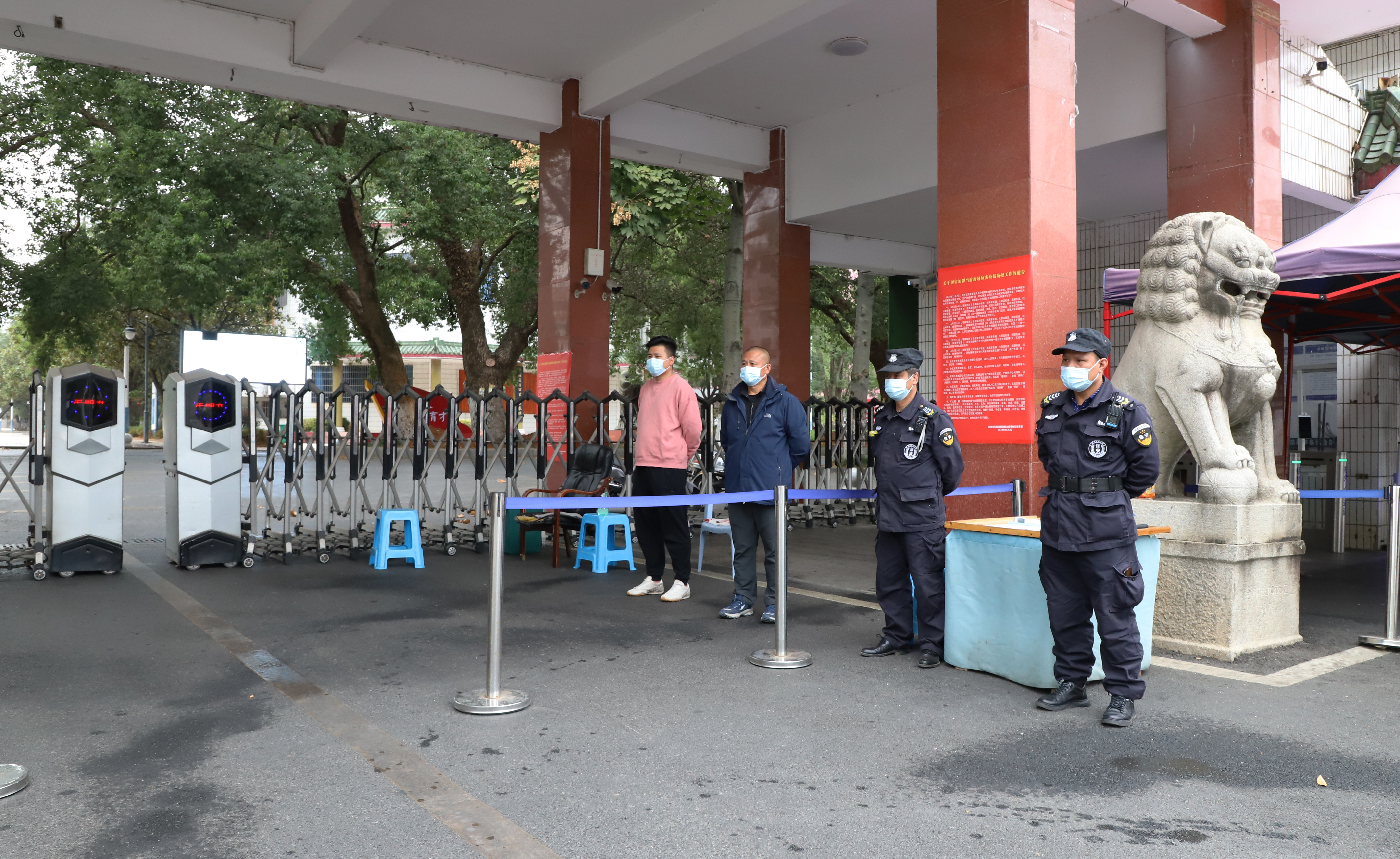 广大党员干部值守校内各出口