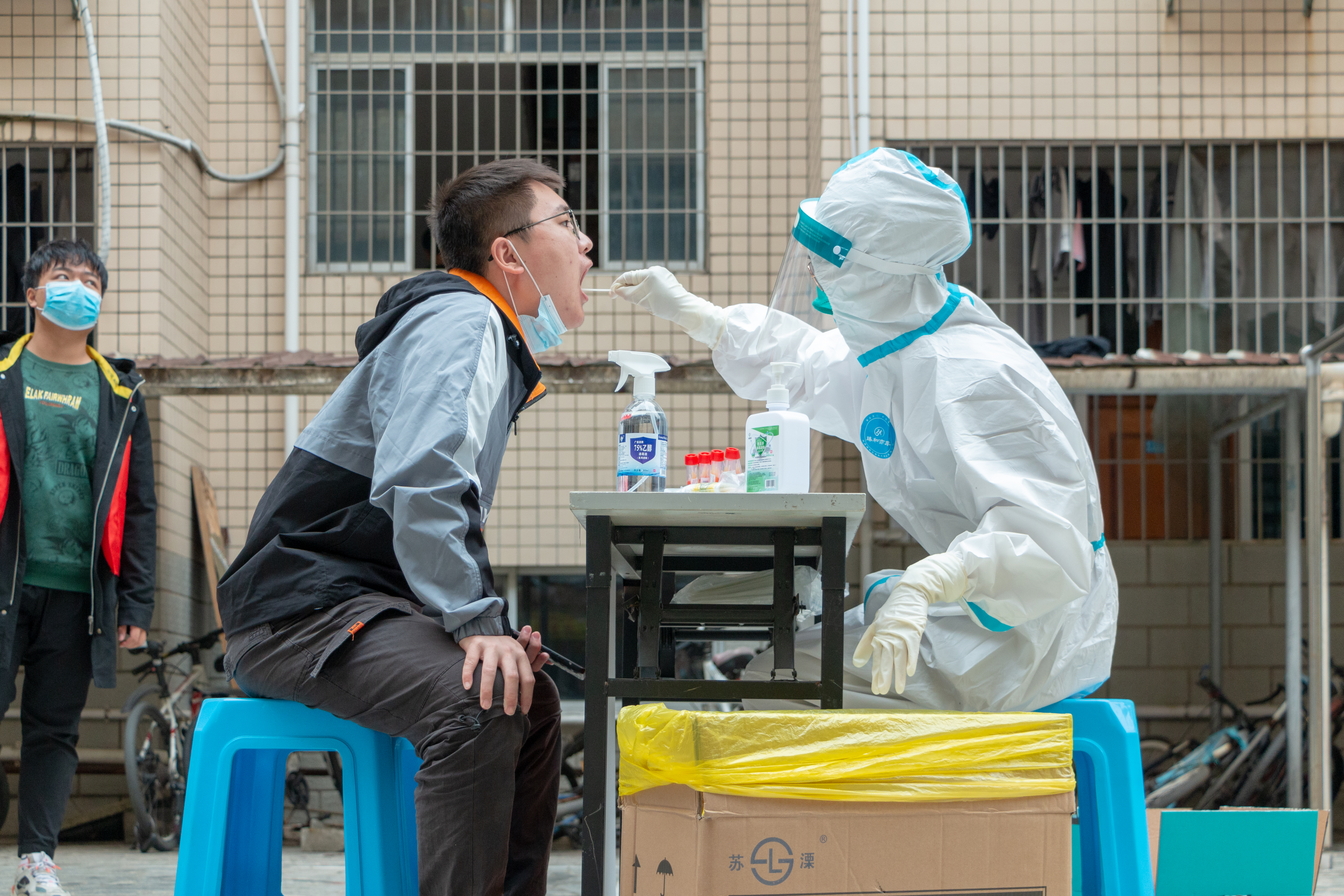 一个个身穿白色防护服的医护工作者