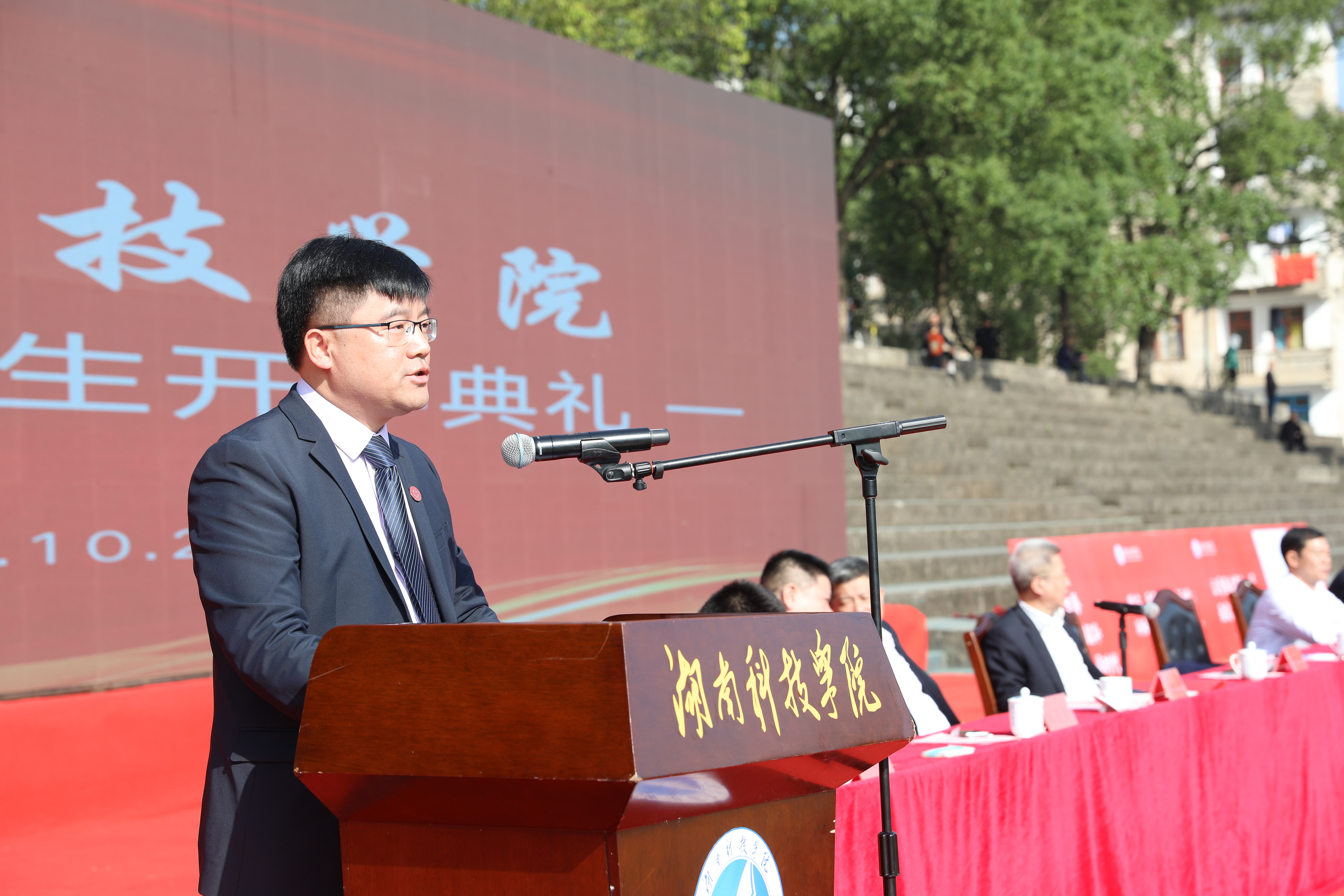 本网讯(记者 邓洁 陈汝婷 吴贵佳)10月23日,学校举行2020级新生军训总结表彰大会暨开学典礼。党委书记曾宝成,党委副书记、校长李钢,校领导唐艳明、吴小林、程智开,党委委员、组织部长何福林,武警永州支队副参谋长蒋志平出席,大会由唐艳明主持。