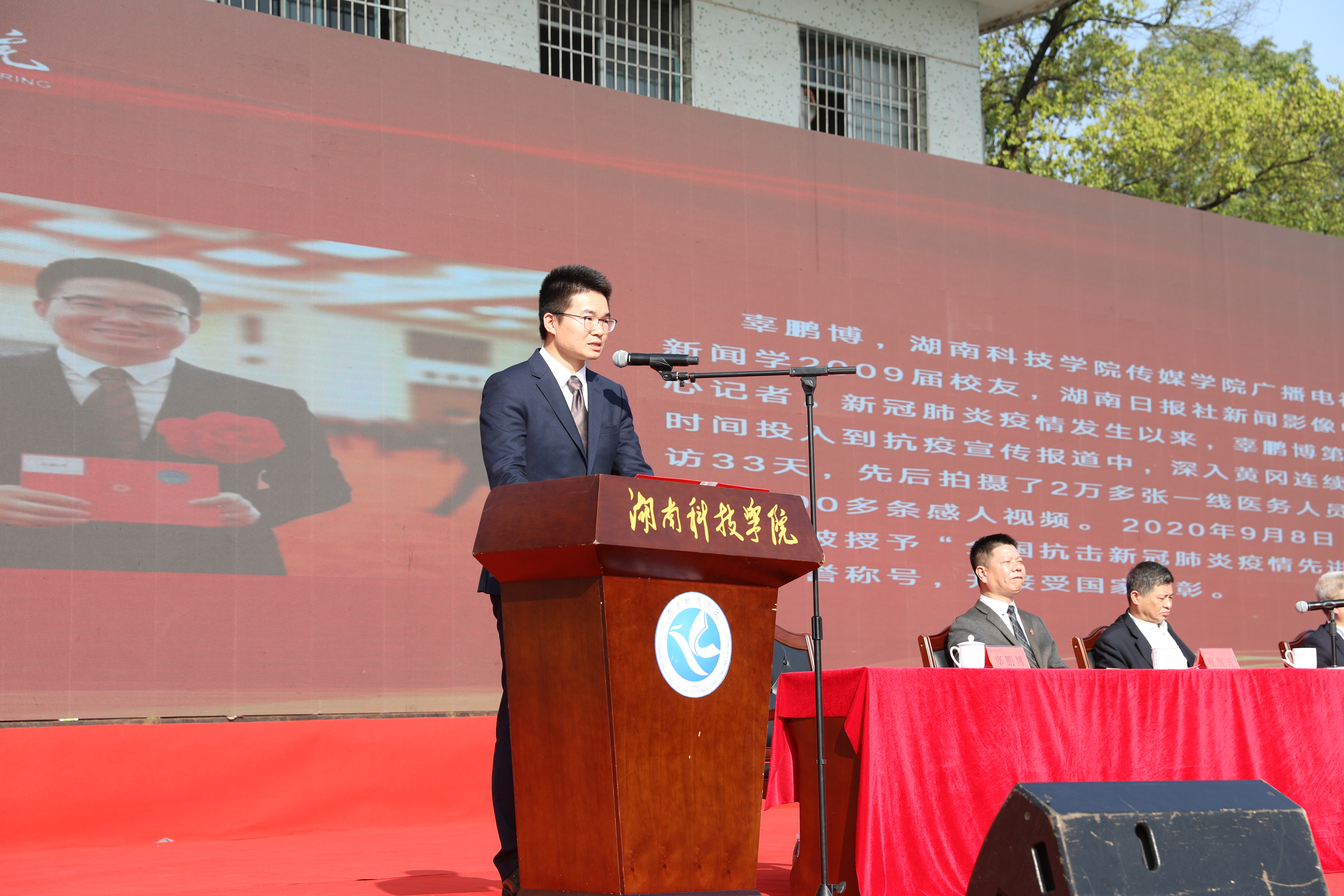 学校还特邀2009届校友、全国抗击新冠肺炎疫情先进个人辜鹏博回校,他向全体新生分享了自己的战“疫”故事。作为战“疫”一线的逆行者,他从大年初一开始,深入抗“疫”一线连续采访33天,先后拍摄了2万多张一线医务人员照片,300多条视频,见证用生命捍卫生命的战“疫”时刻。他告诉希望学弟学妹们机会属于每一个努力的人,每一份努力都是机会的铺垫,要有敢做敢拼的精神,珍惜生活中每一次经历,珍藏每一份感悟,多一份纯粹与天真,争做时代的奋进者、开拓者和领跑者。