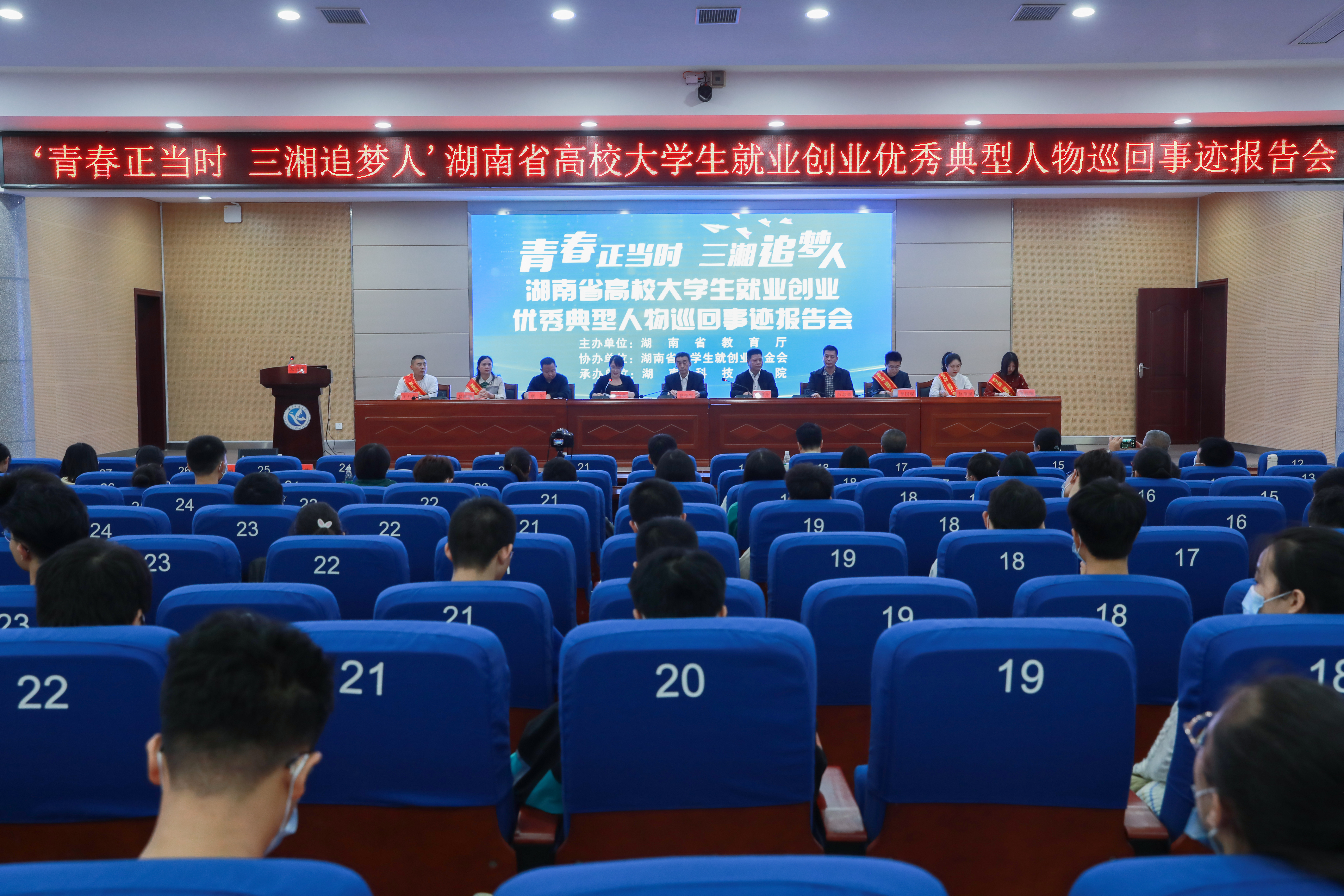 报告会上,伟德官网毕业生、山东旭兴网络科技有限公司董事长李国琛,中南大学毕业生、湖南易能生物医药有限公司创始人易跃能,长沙学院毕业生、福建省光泽县止马镇团委副书记赵瑱涵,湘潭医卫职业技术学院毕业生、湘潭第六人民医院护士、援鄂抗疫先锋队队员罗晨阳,湖南医药学院毕业生、长沙果缤纷商业管理有限公司联合创始人王红伟等5位就业创业优秀典型,分享了各自学习、科研、扎根基层、就业创业的先进事迹。