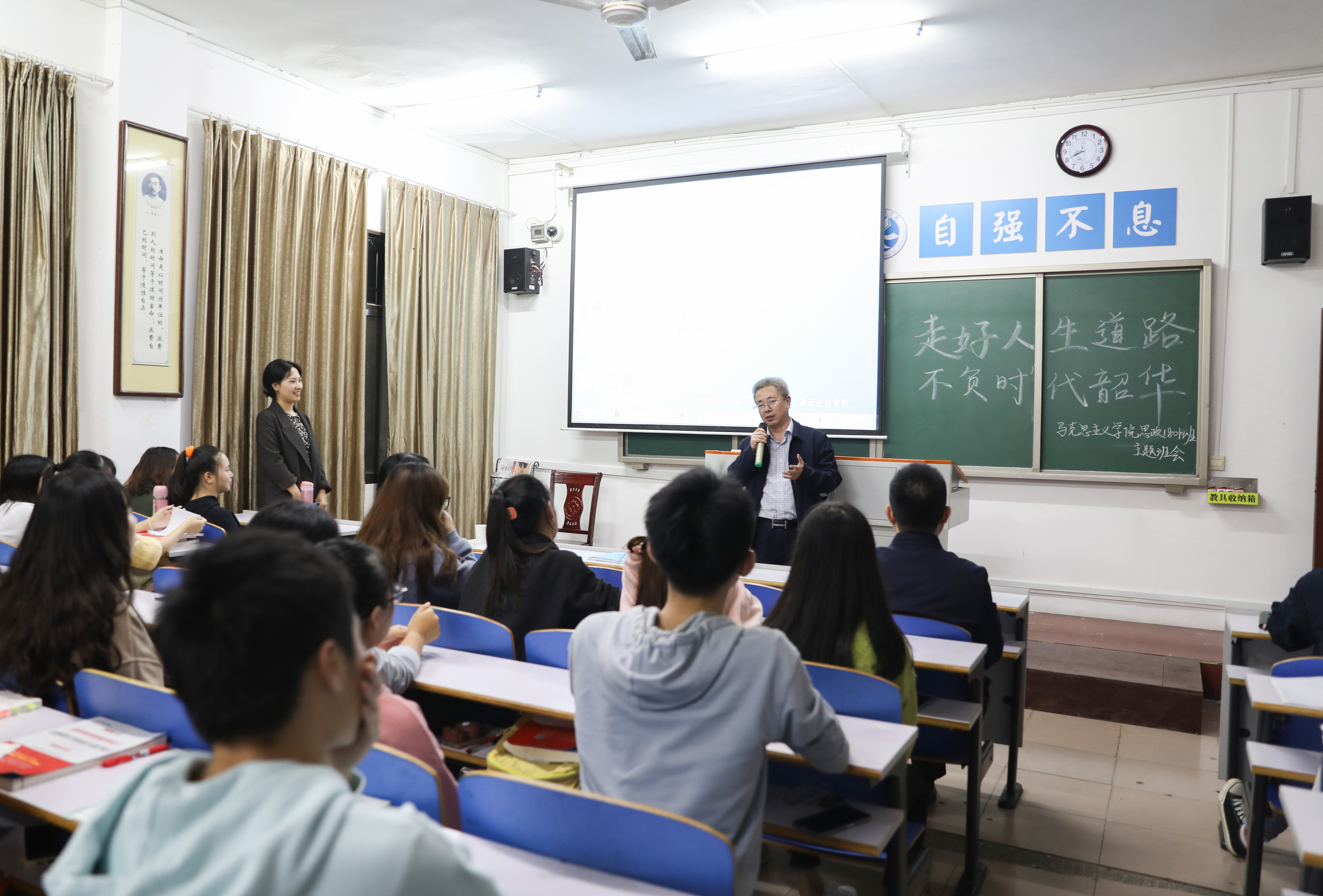 本网讯(记者 黎雪平 吴贵佳)“希望同学们走好人生道路,不负时代韶华,做新时代坚定的青年马克思主义者。”日前,为贯彻落实习近平总书记在湖南考察调研时的重要讲话精神,校党委书记曾宝成以第二班主任的身份,来到鹤鸣楼406教室,全程参加了思政1801班的主题班会,聆听同学们的心声,引导同学们扣好人生第一粒扣子。