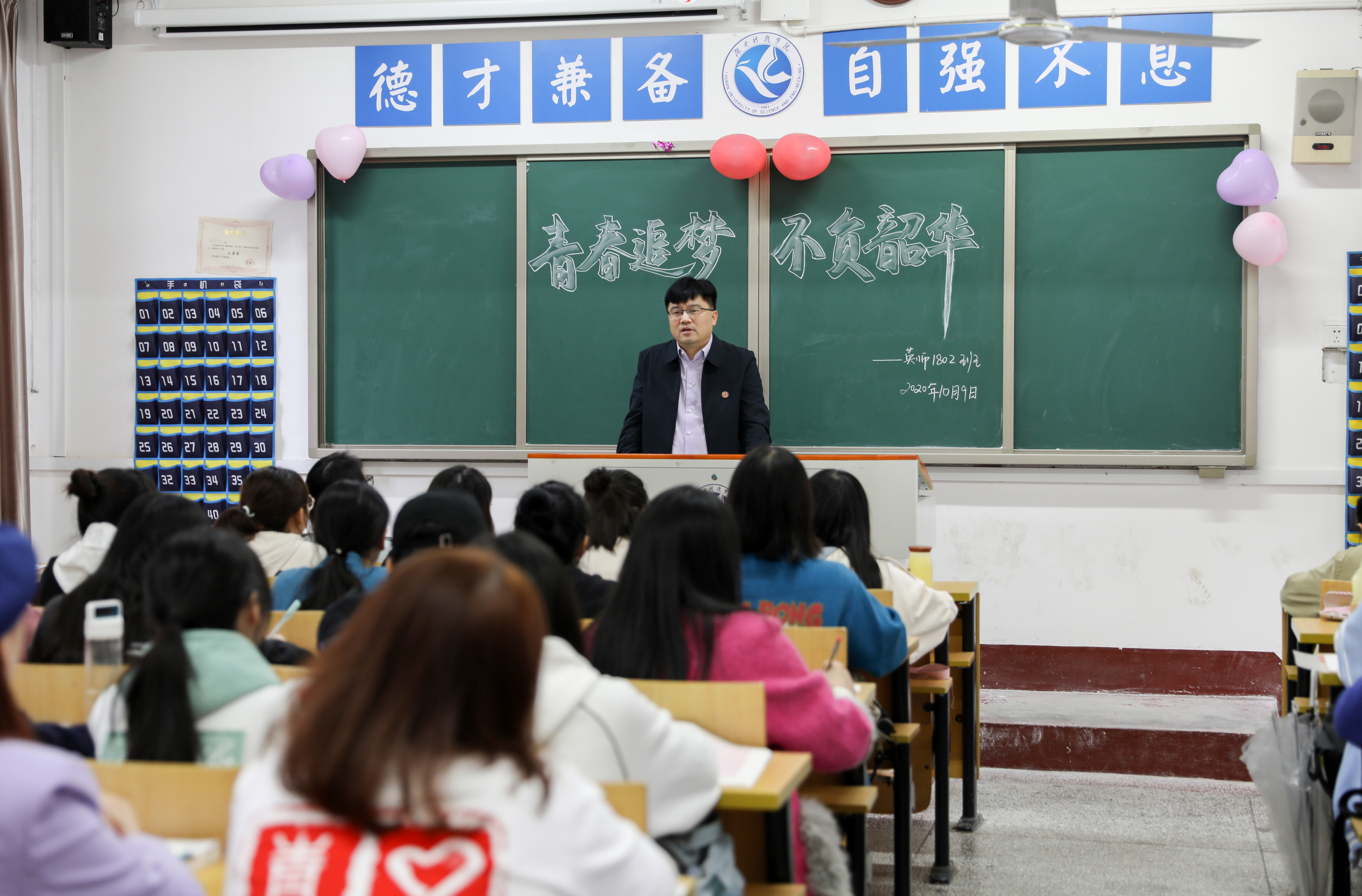 本网讯(记者 刘娜)10月9日下午,校长李钢来到博雅楼104教室,以外国语学院英语师范专业1802班第二班主任的身份,参加了“青春追梦 不负韶华”主题班会,并与同学们亲切交流。