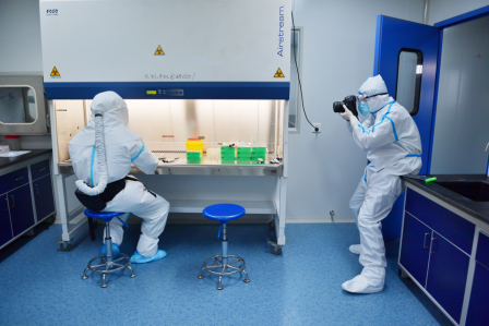 3月2日,黄冈市疾控中心,辜鹏博在距离病毒最近的地方,记录湖南医疗队员进行核酸检测的全过程