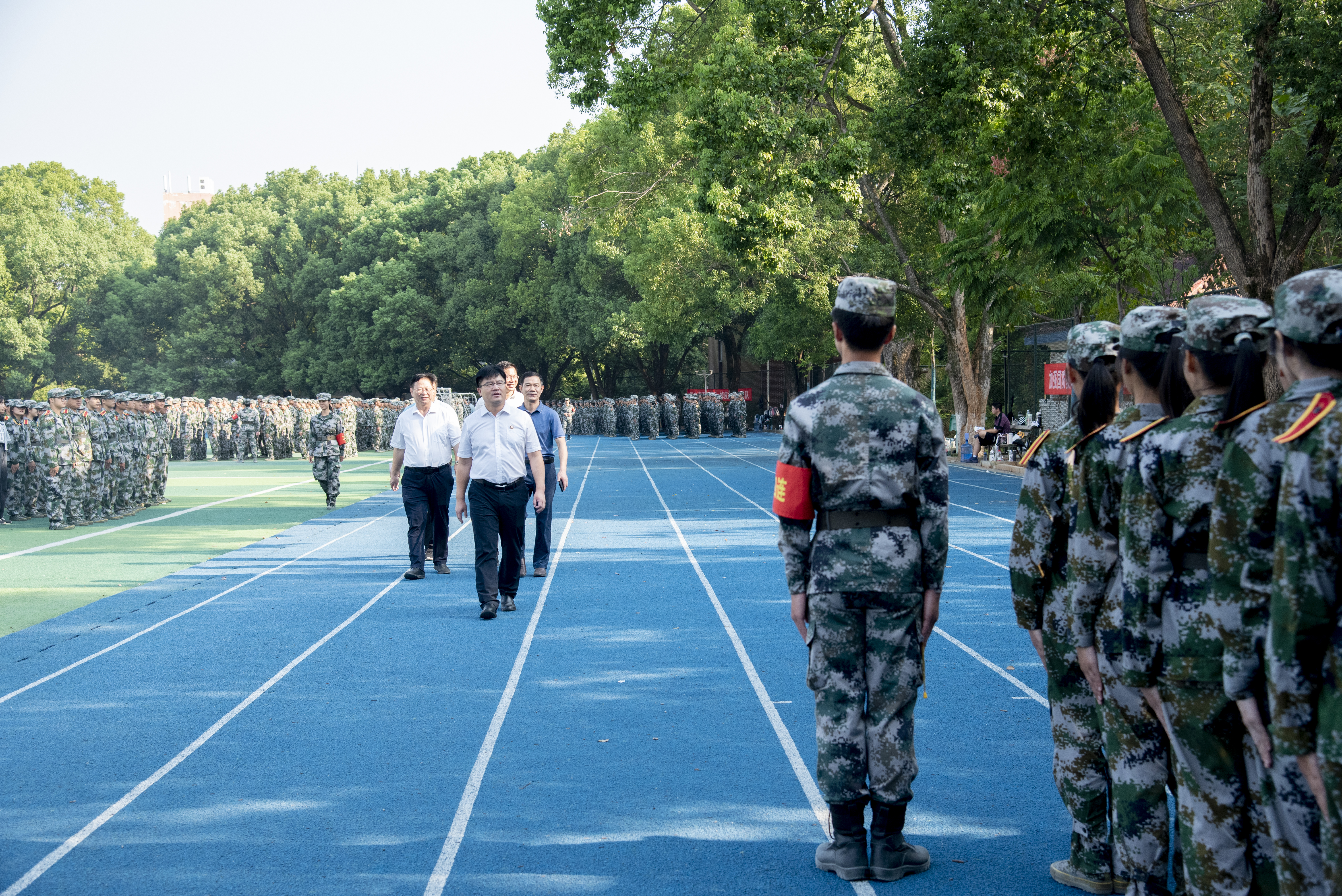 李钢走进军训队伍中,鼓励同学们要勇于战胜自我、超越自我,克服困难、磨练意志,培养团队意识,增强国防观念、厚植爱国情怀,为大学第一课交上满意的答卷。