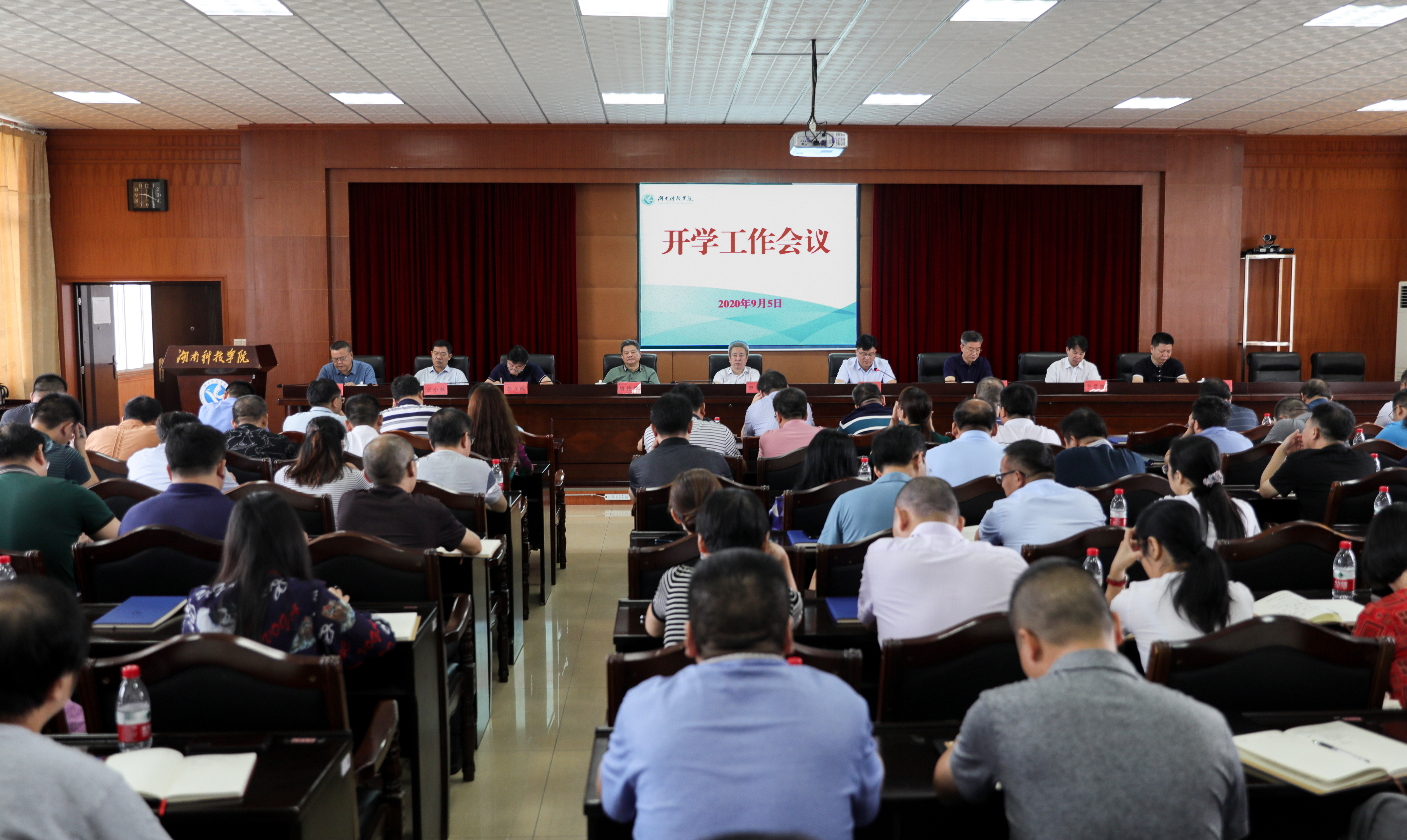 本网讯 9月5日上午,学校召开开学工作会议,全面部署新学期重点工作。会议要求,全校上下要统一思想、凝心聚力,扎实苦干、团结奋进,认真做好任务分解,创新开展工作,推动学校内涵发展、特色发展、跨越发展。党委书记曾宝成、校长李钢,校领导唐艳明、宋宏福、彭立威、李常健、吴小林、程智开,党委委员、组织部长何福林出席会议。