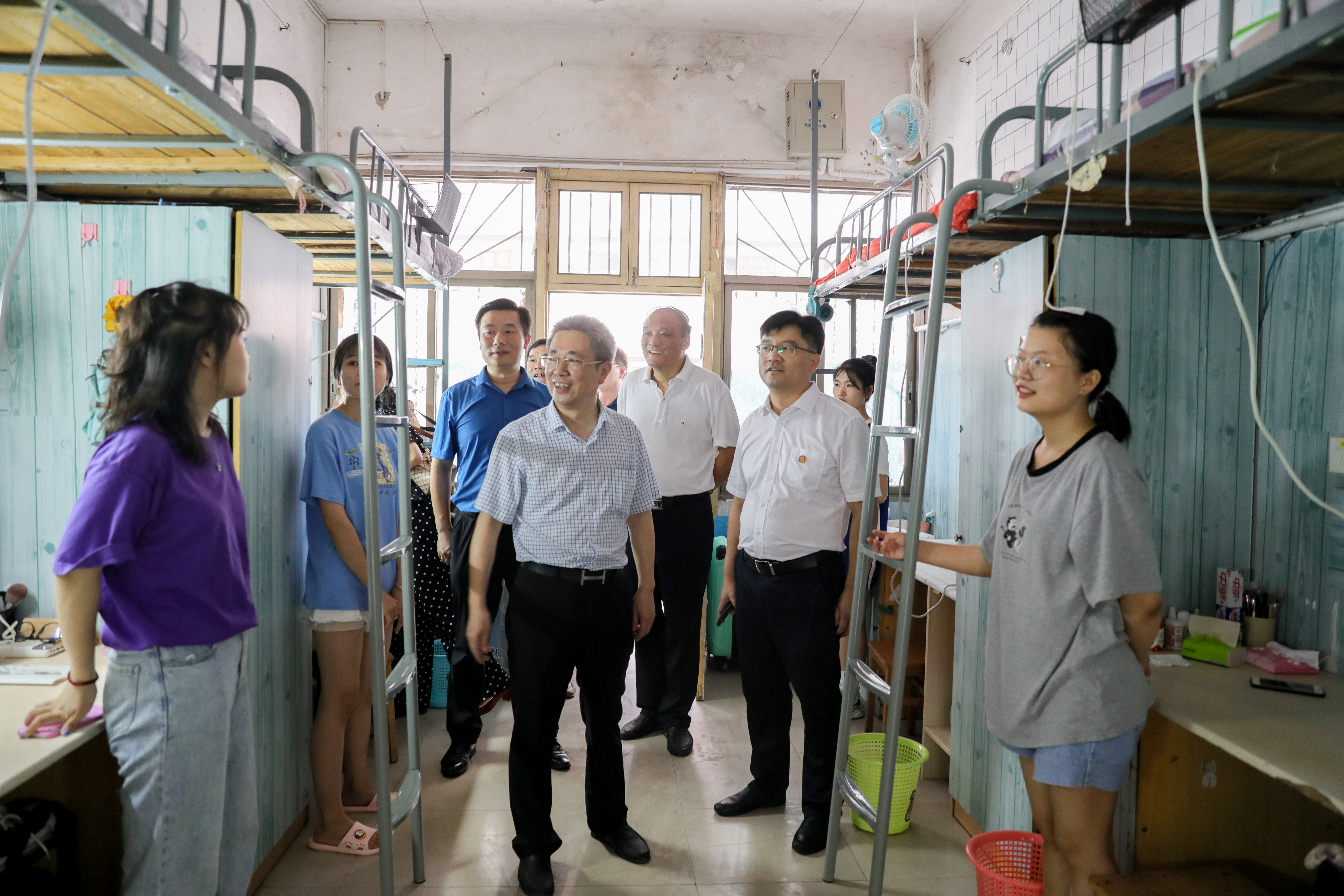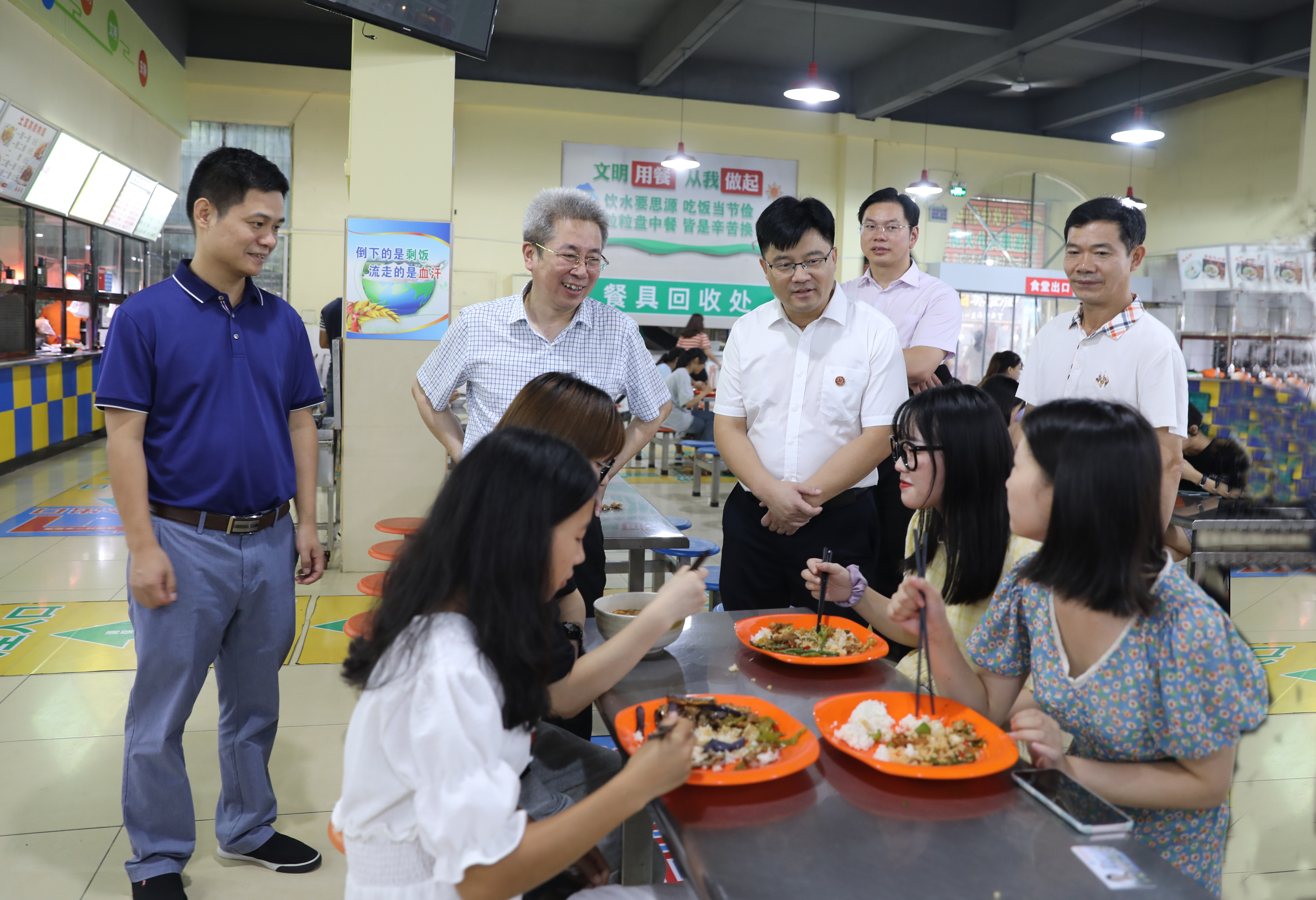 本网讯(通讯员 肖卉莹 黄瑾)9月6日下午,党委书记曾宝成,校长李钢,副校长吴小林来到学生公寓、食堂看望慰问返校学子。党政办、宣传部、学工部、后勤服务总公司等相关部门负责人陪同走访。
