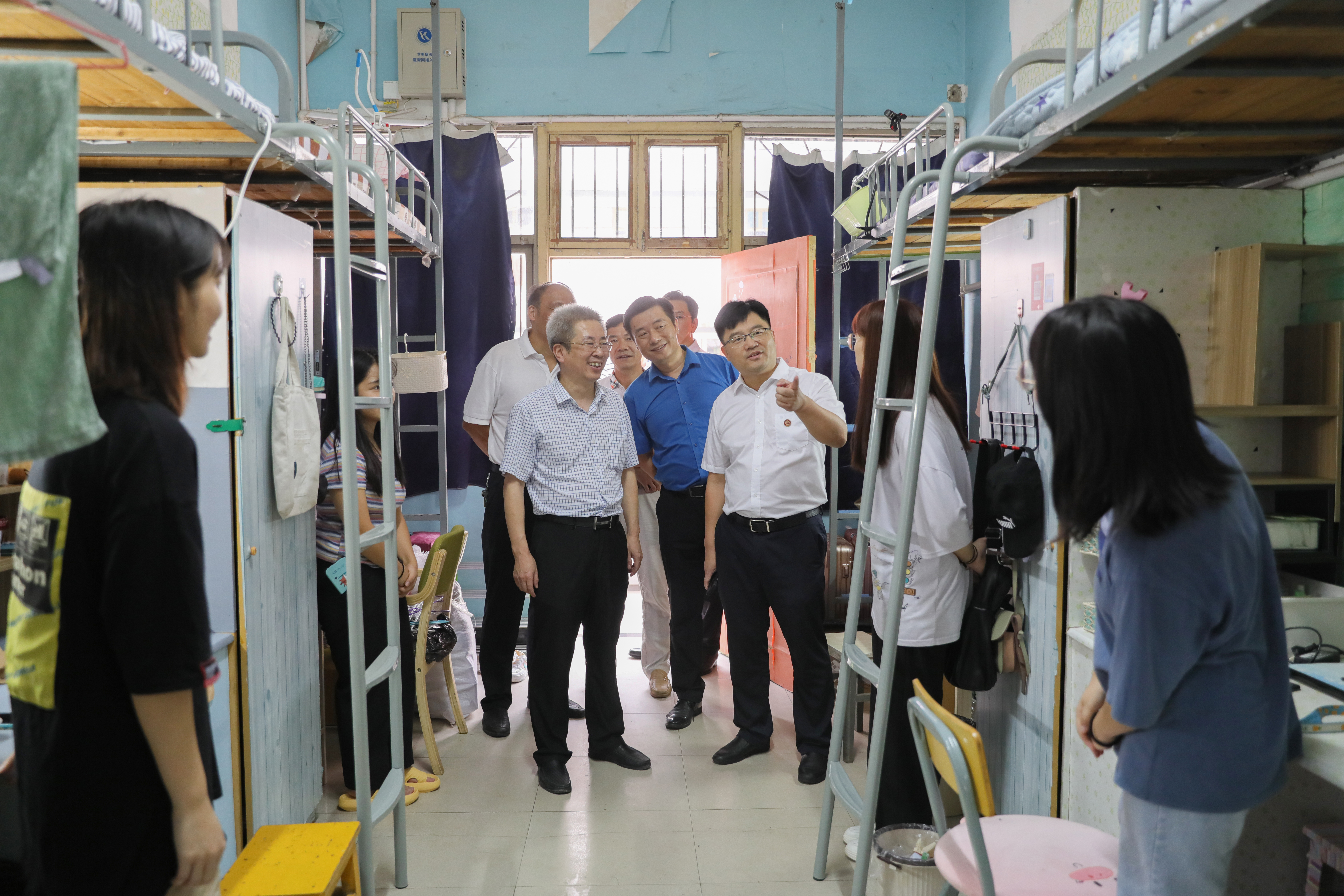 “回校后感觉如何?”“这学期有哪些学习打算?”……走访每一间宿舍时,校领导都与同学们亲切攀谈,详细询问了大家返校途中的防护以及来校后的住宿和饮食等情况,嘱咐大家强身健体,保持良好的生活规律,以全新的面貌迎接新学期的学习和生活。