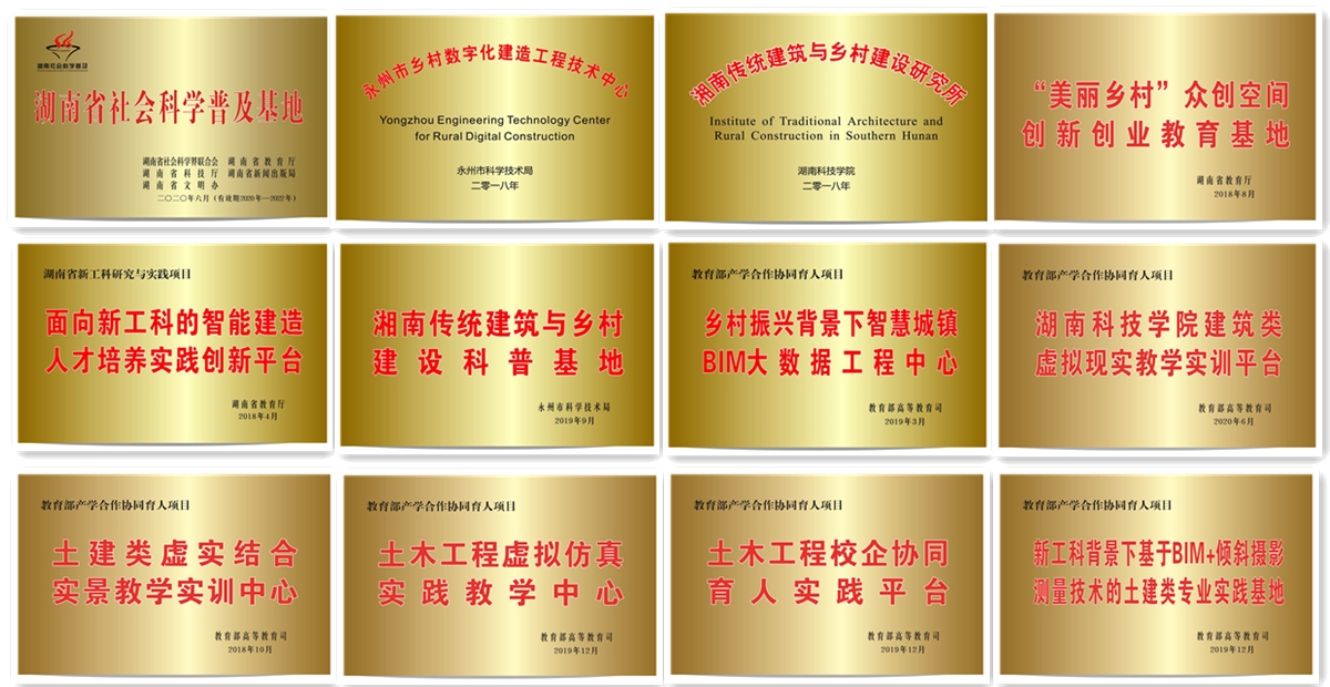 学院现有各类仪器设备价值一千余万元,包括探地雷达测试系统、飞马无人机、大疆无人机、法如三维激光扫描仪、GPS接收机、微机屏显式液压万能试验机等设备。拥有湖南省古建筑文化遗产保护传承社会科学普及基地、湖南省优秀校外实习基地、湖南省校企合作“美丽乡村”众创空间创新创业教育基地等多个省级实践教学基地,拥有BIM技术研发中心、伟德国际1946源于英国湘南传统建筑与乡村建设研究所、永州市“乡村数字化建造工程技术中心”、永州市“湘南传统建筑科普基地”以及教育部协同育人“乡村振兴背景下智慧城镇BIM大数据工程中心”等实践中心。学院注重与社会多方合作办学、协同育人,与中铁、中交以及湖南建工集团等企业签署了校企合作协议;先后与广州、深圳、长沙、杭州多家知名企业建立校外实习基地、创客中心等人才培养基地。