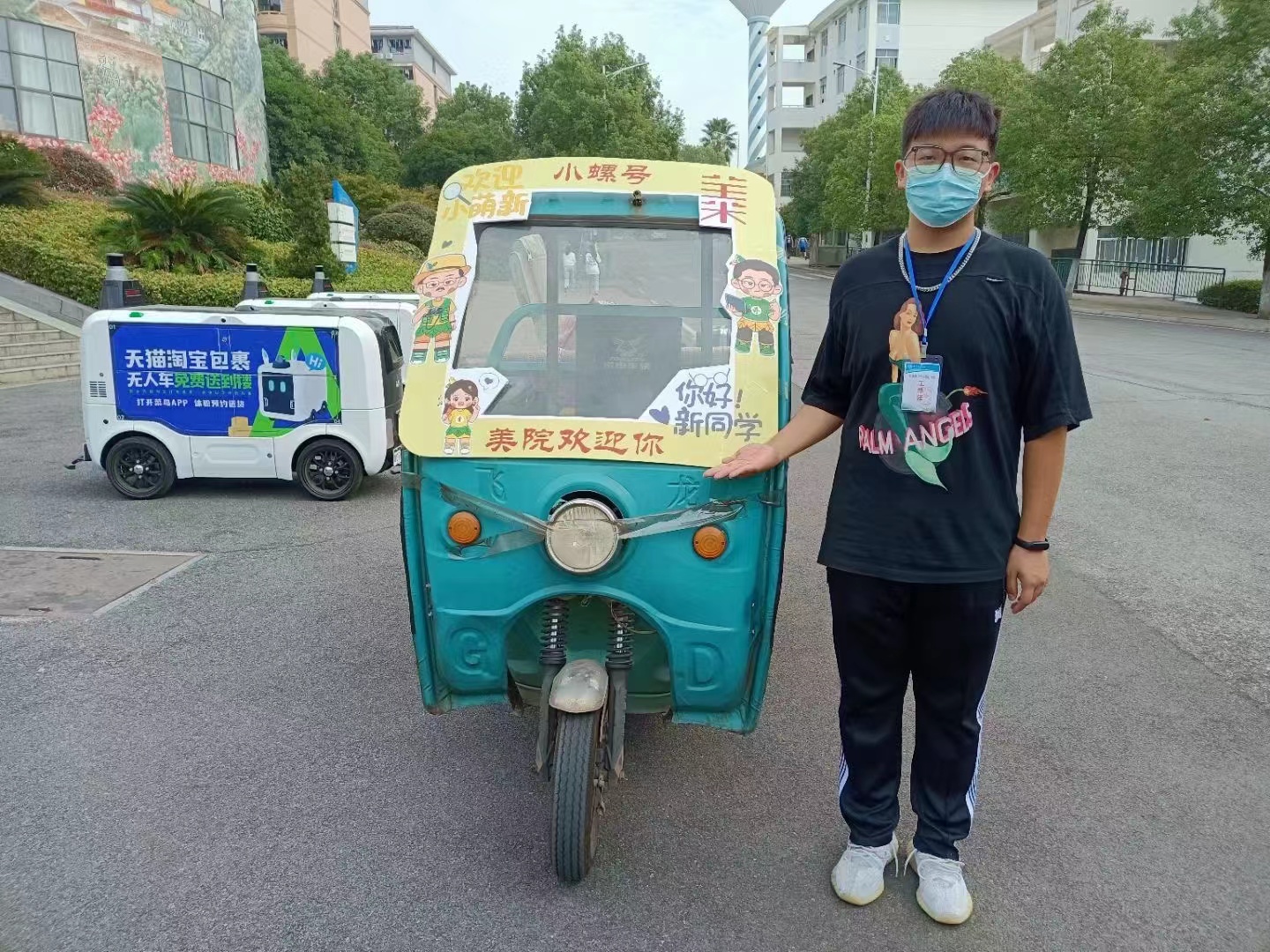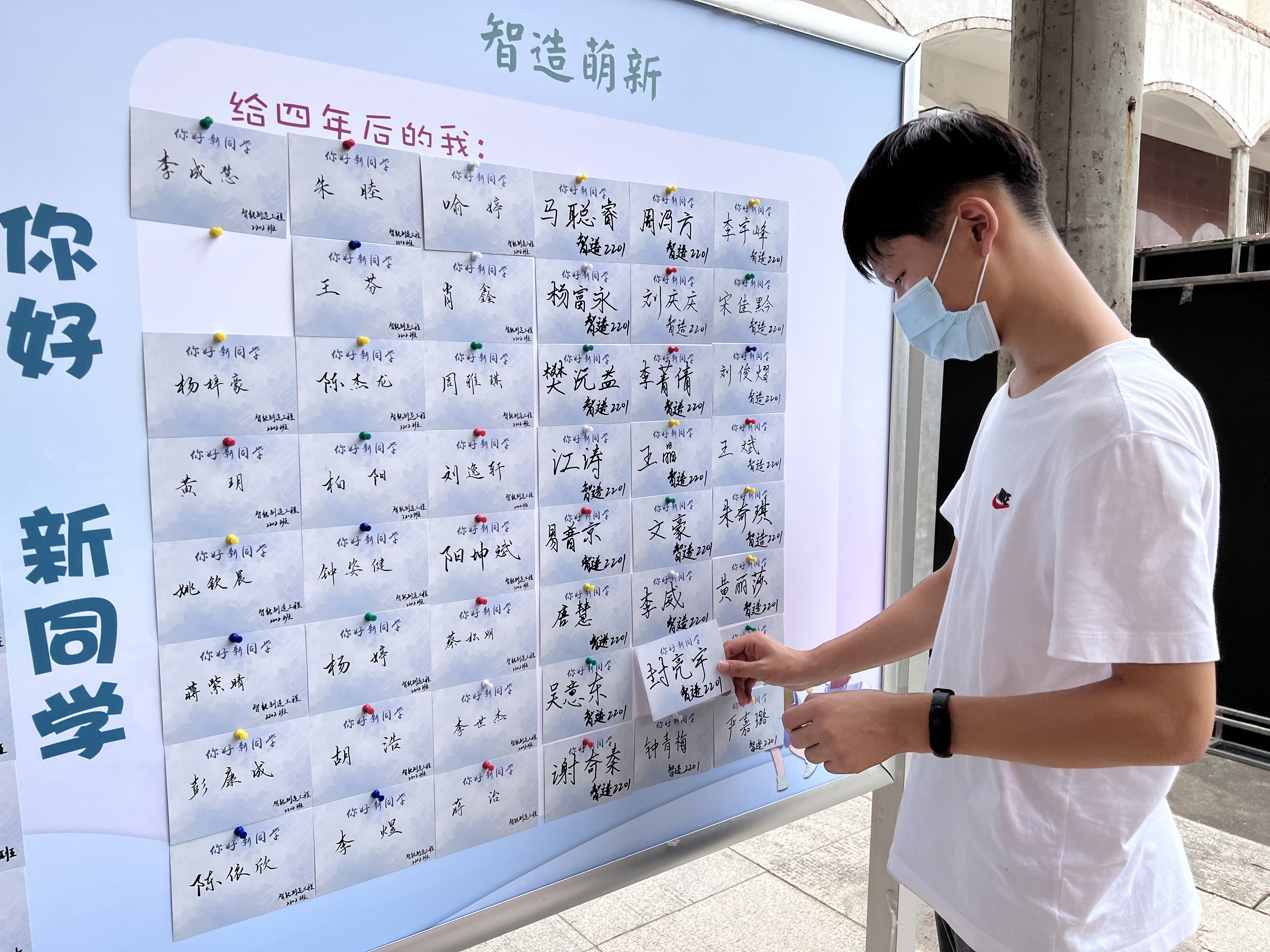 各教学学院也将科院温度落实到实处,从特色出发为新生带来多样的入学体验:美术与艺术设计学院推出热心“小螺号”服务车队,为新生代运行李;智能制造学院推出“开学第一张照片”、“喜迎二十大”知识竞答得校徽活动、“给四年后的我”明信片墙,给新生满满的仪式感。
