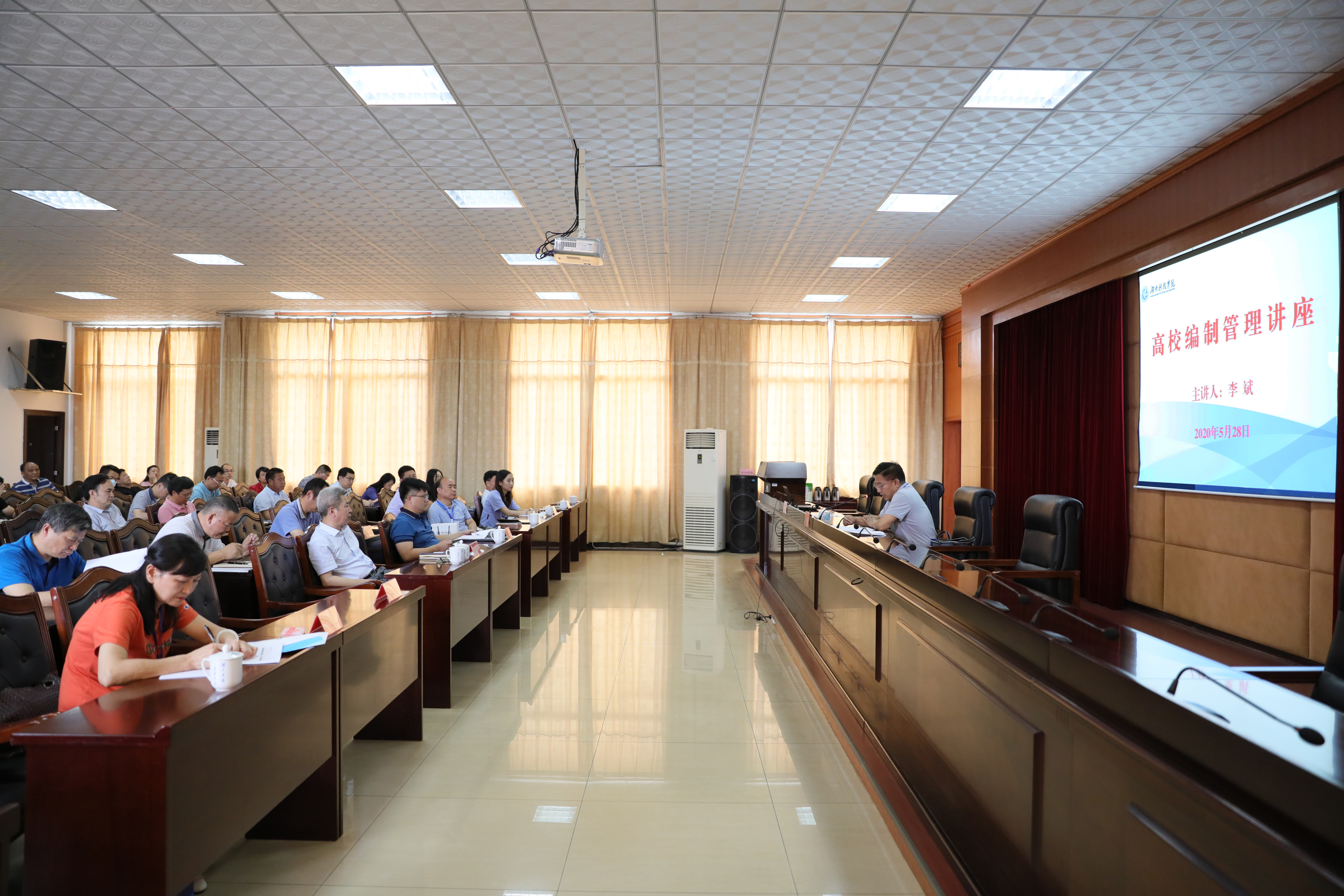 本网讯 5月28日下午,省委编办实名制管理处处长李斌、省人社厅事业单位人事管理处处长钟吉元受邀来校做专题讲座,省人社厅事业单位人事管理处二级调研员邓凤玲、省人社厅事业单位人事管理处一级主任科员廖佳、校党委书记曾宝成、校长李钢,校领导唐艳明、宋宏福、彭立威、吴小林、程智开,党委委员、组织部长何福林,党委委员、宣传统战部长杨涛到场聆听。讲座由党委副书记唐艳明主持。