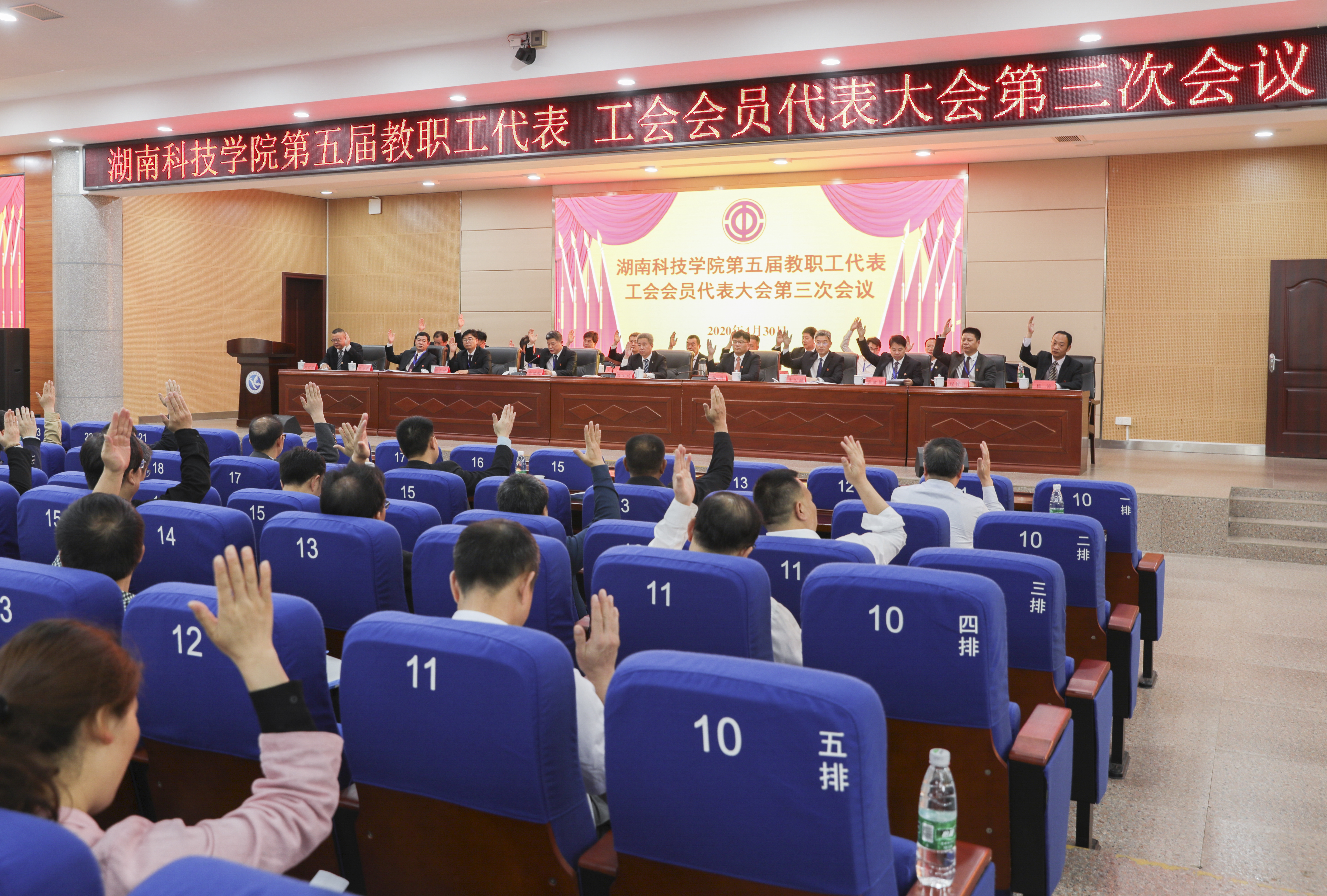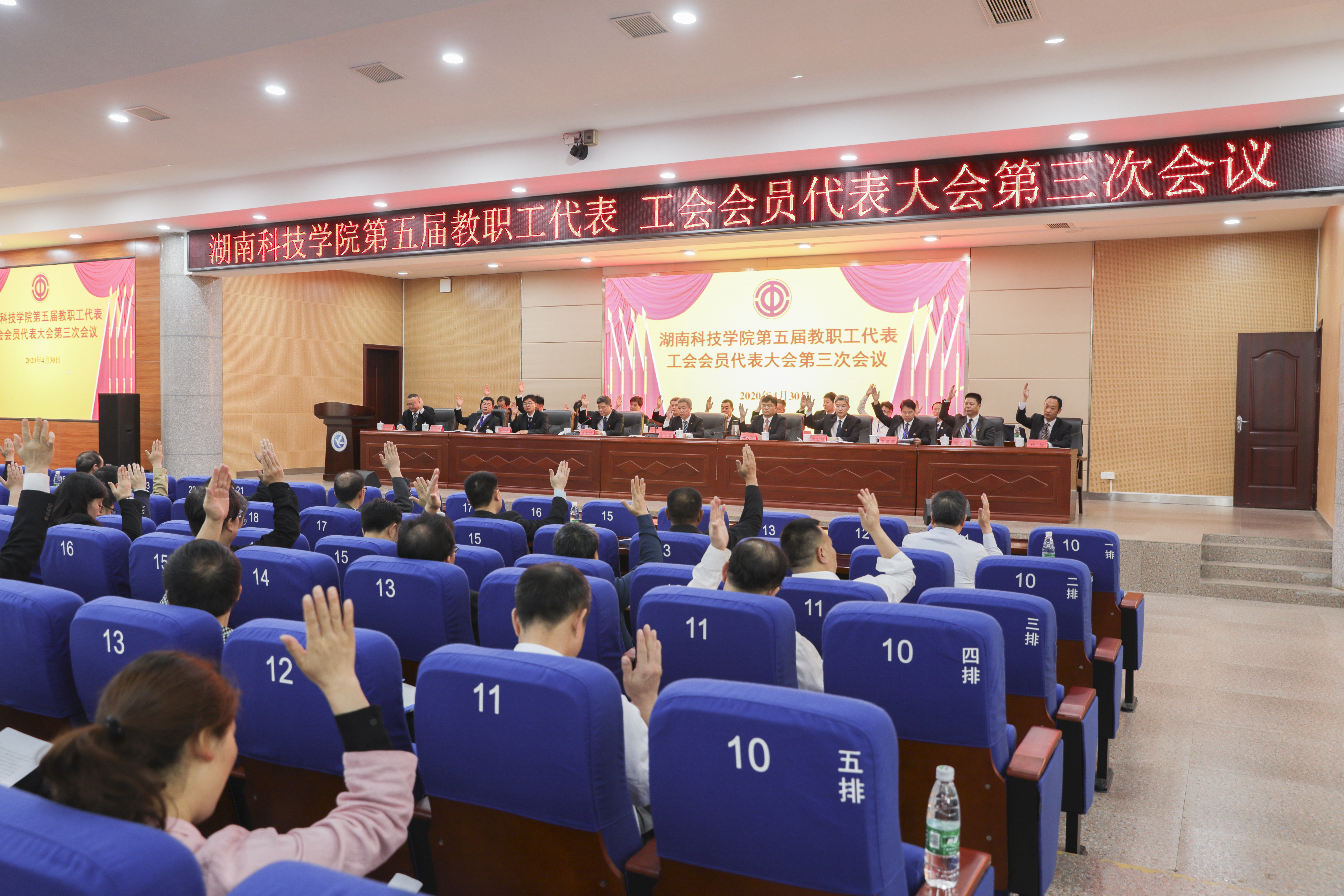 30日上午,大会闭幕式采取举手表决的方式,通过了《学校工作报告》《工会工作报告》《学校2019年财务预算执行情况和2020年财务预算安排报告》《工会经费审查工作报告》《伟德国际1946源于英国高校教师系列(含实验技术)专业技术职称评审工作实施方案》。