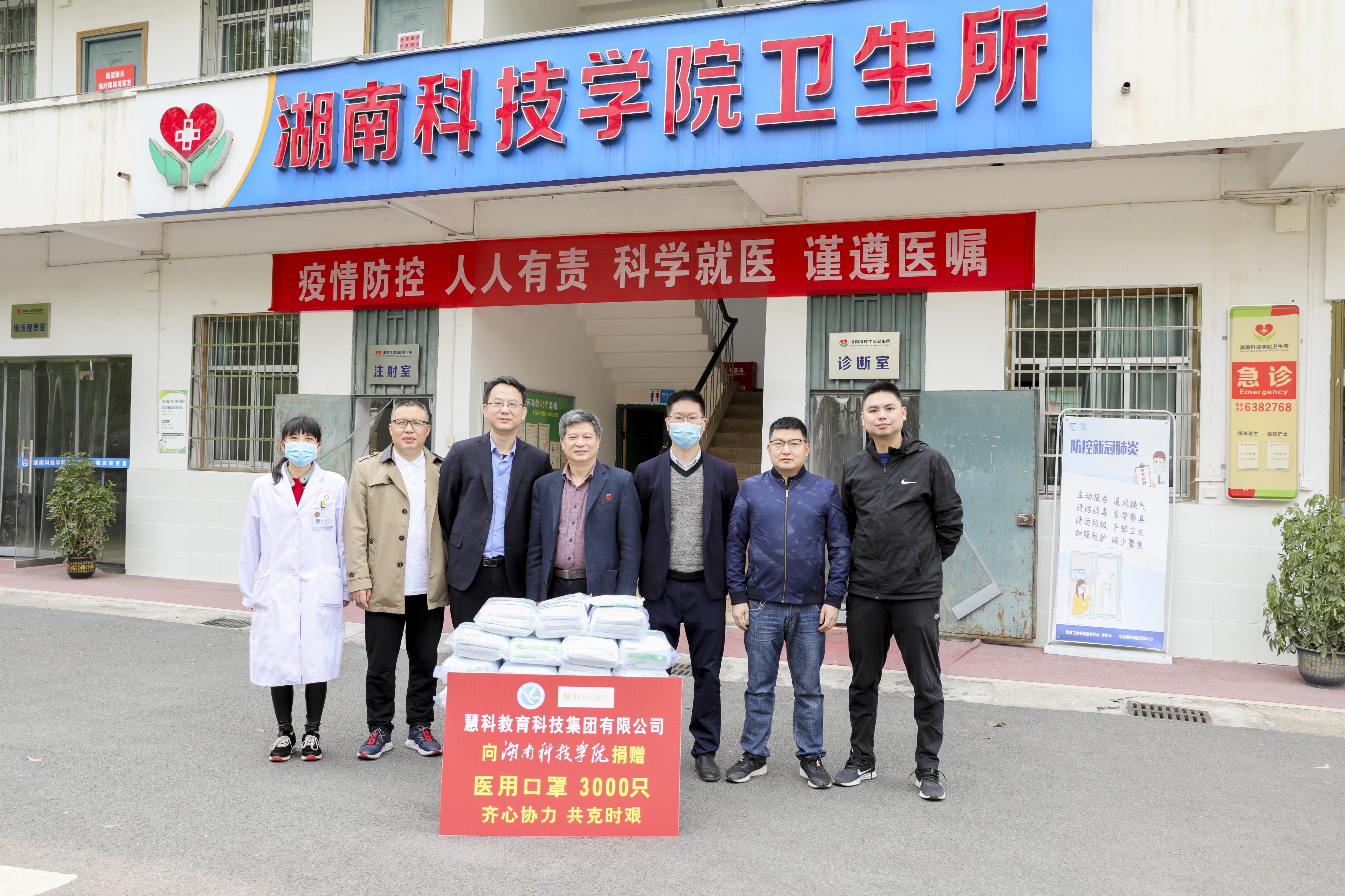 本网讯 4月10日上午,慧科教育科技集团有限公司湖南总经理阳剑来校,捐赠3000只医用口罩助力学校复学工作。校党委副书记唐艳明出席捐赠仪式。 唐艳明表示,这份防控物资凝聚着对师生的呵护之情,彰显了企业的责任担当。学校将不忘育人初心,全面落实防控工作,让爱心之举落地生花,切实保障师生的生命安全,全力做好复学前的各项准备。 电子与信息工程学院、后勤服务总公司、校医院等相关部门负责人参加捐赠活动。