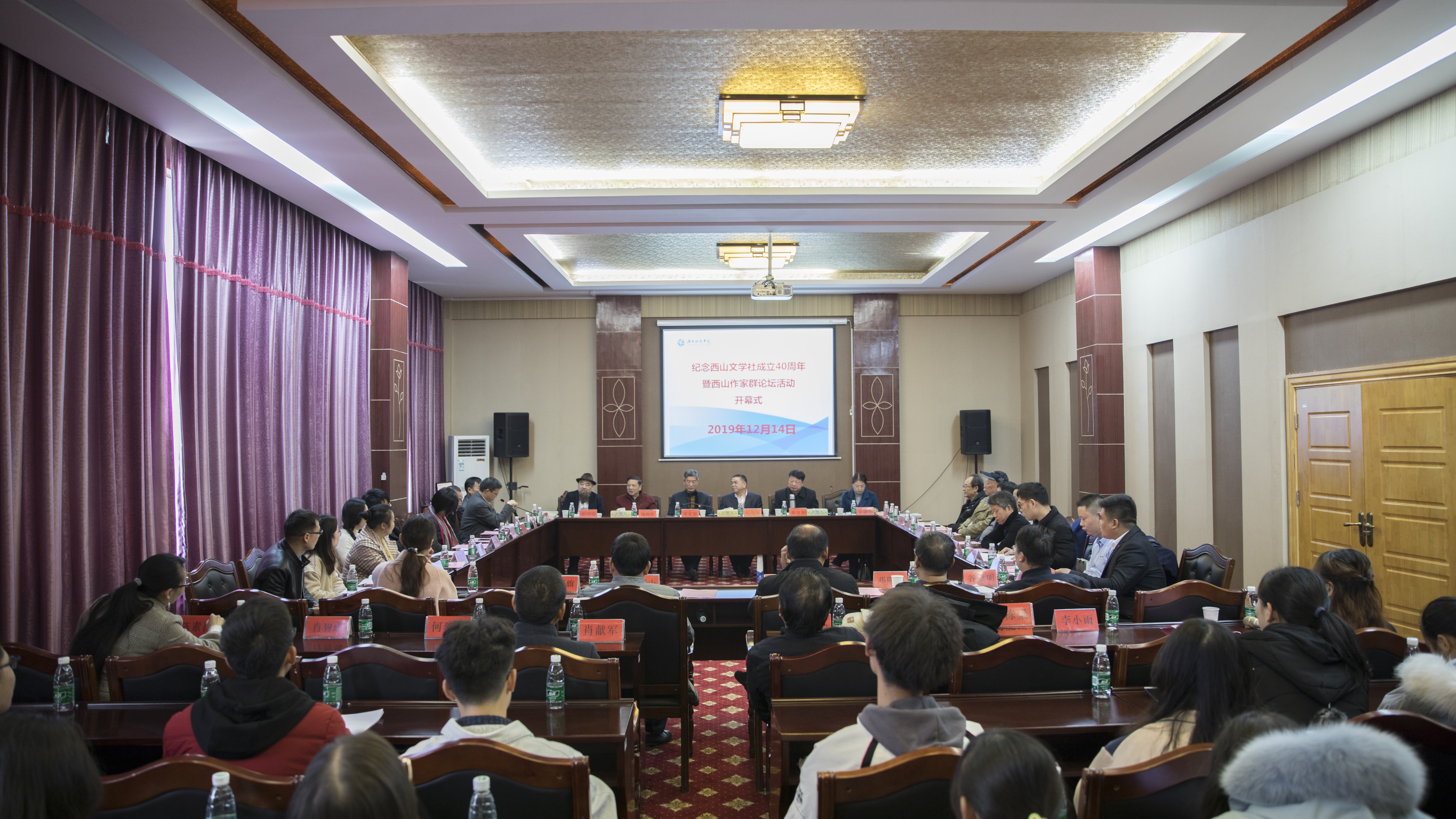本网讯 12月14日上午,纪念西山文学社成立40周年暨首届西山作家群论坛活动开幕式在校举行,副校长宋宏福,人文与社会科学学院主要负责人,西山文学社历届校友作家代表、西山文学社社员代表等70余人参加开幕式。开幕式由潘雁飞主持。