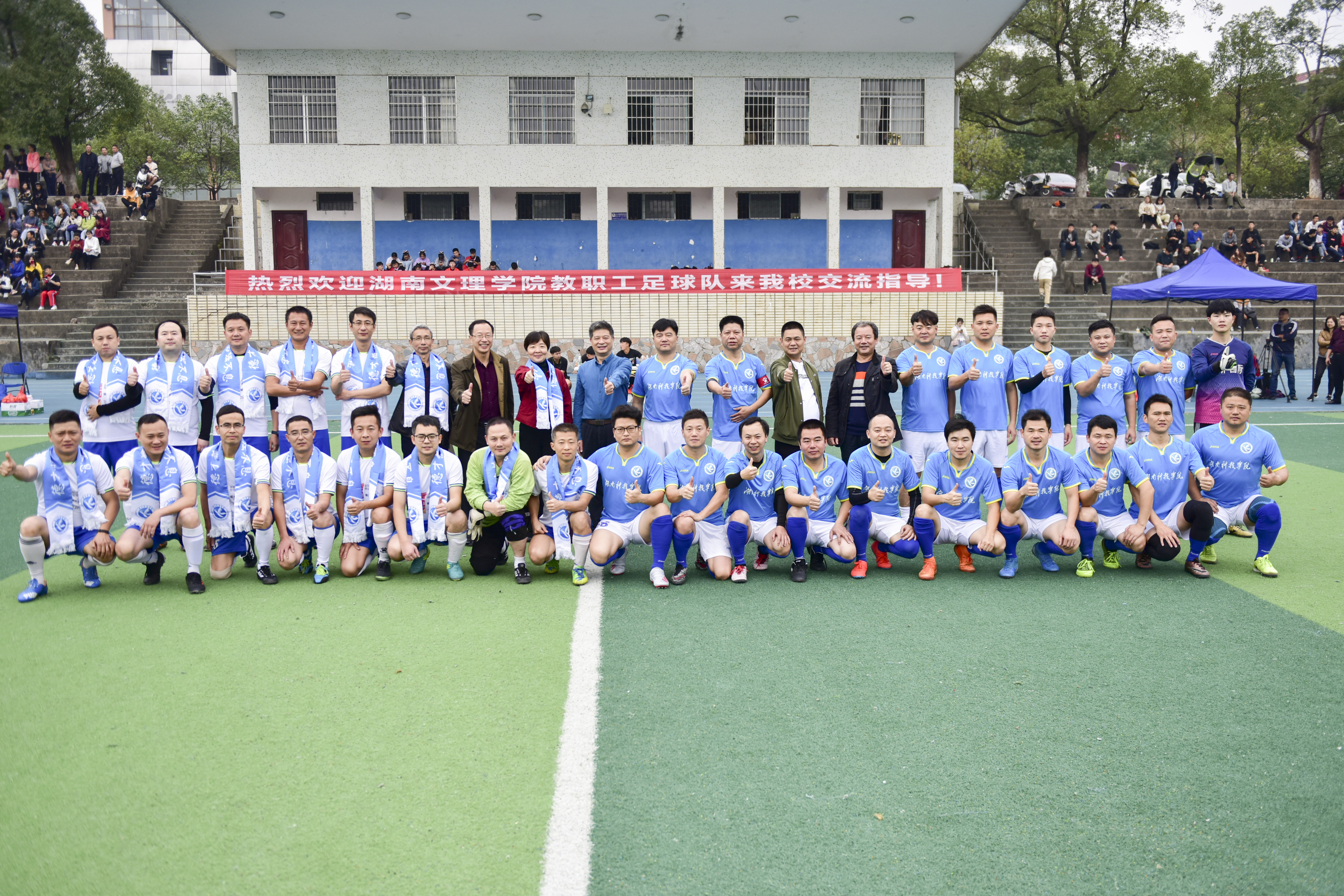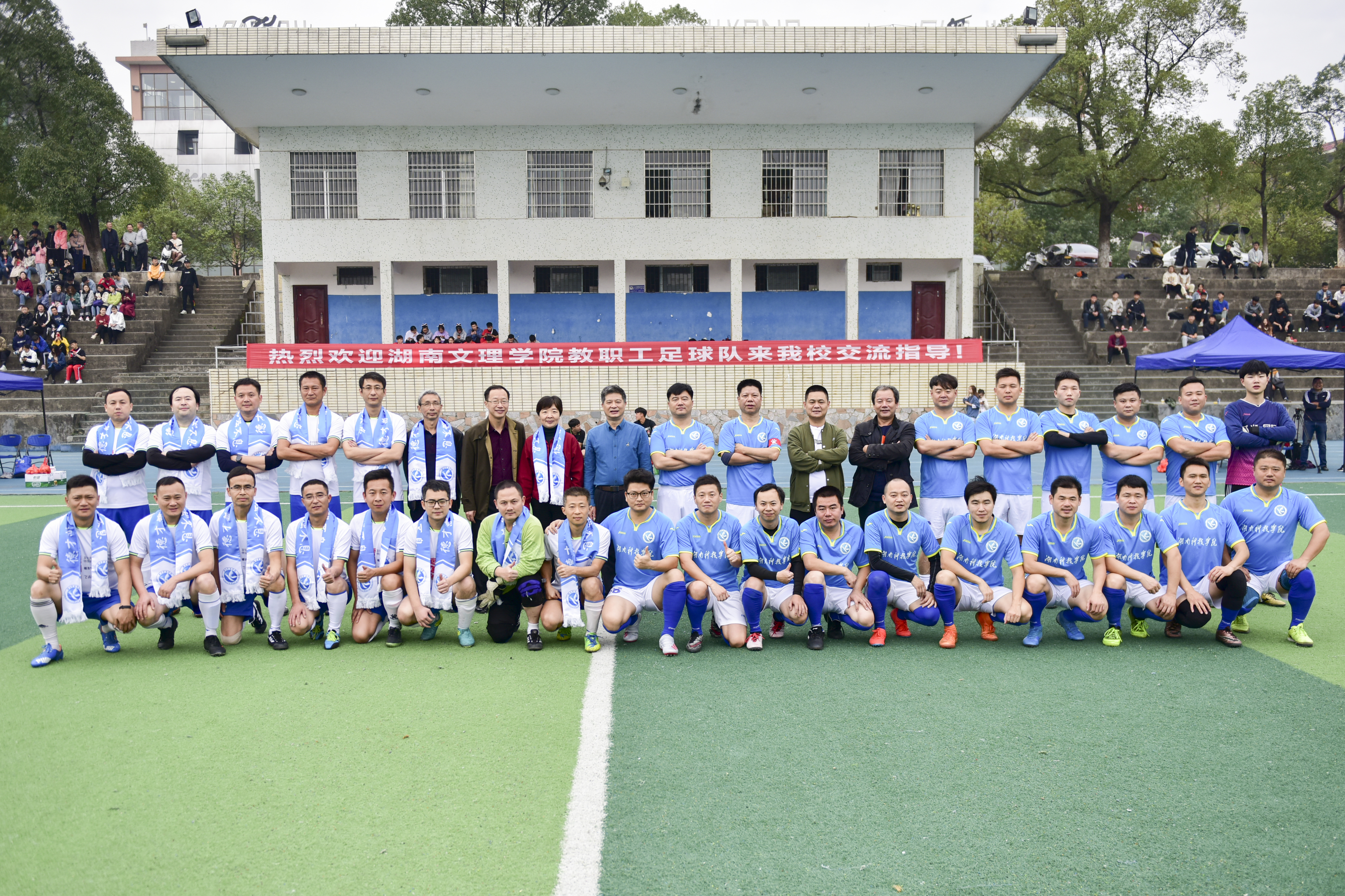 本网讯 11月24日,湖南文理学院教职工足球队一行14人来校交流,与伟德官网教职工足球队进行了一场足球友谊赛。校长李钢、副校长程智开参加比赛,党委副书记、工会主席唐艳明到场为比赛开球并观赛。