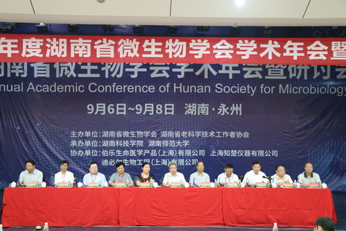 本网讯 9月7日上午,2019年度湖南省微生物学会学术年会暨研讨会在伟德官网召开,来自全国200多名微生物学领域专家学者参加。校党委书记曾宝成、湖南省科学技术协会学会部副部长余佳桂、湖南省微生物学会理事长夏立秋教授参加开幕式。开幕式由副校长宋宏福主持。